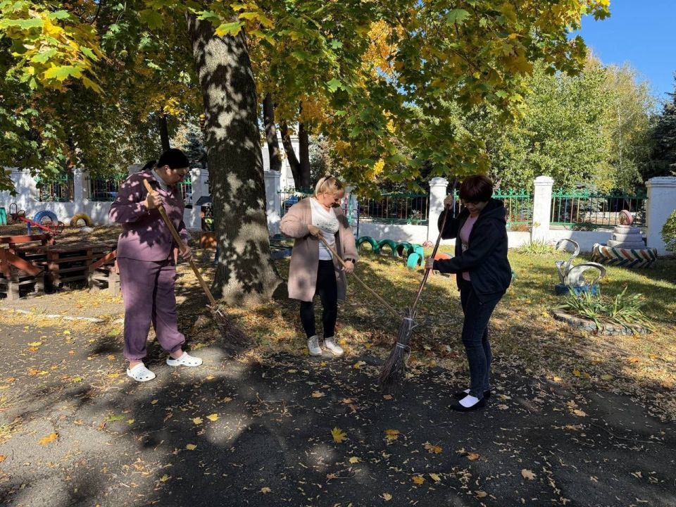Также была организована уборка территории, чтобы дети гуляли на чистой и безопасной территории совместными силами приводятся в порядок игровые площадки и прогулочные зоны.