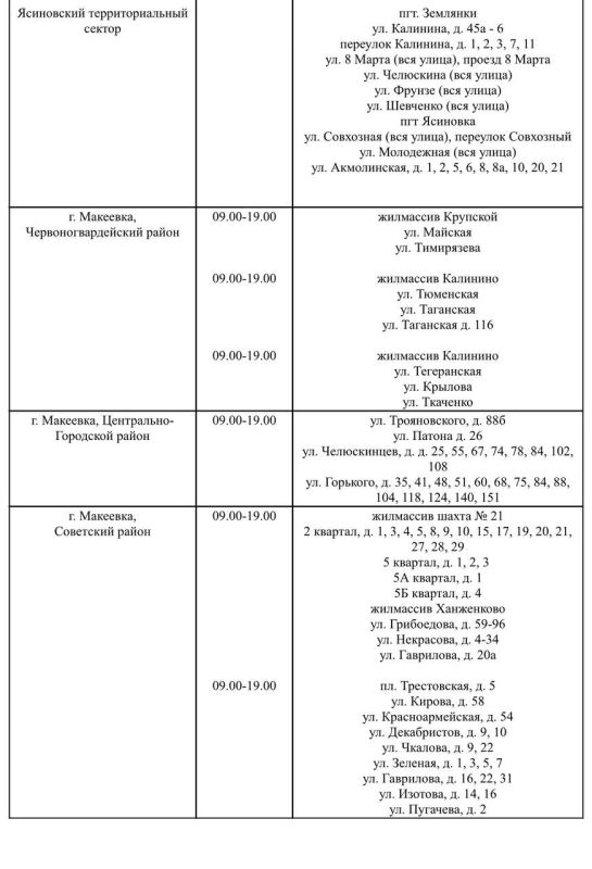 График подвоза воды населению городского округа Макеевка