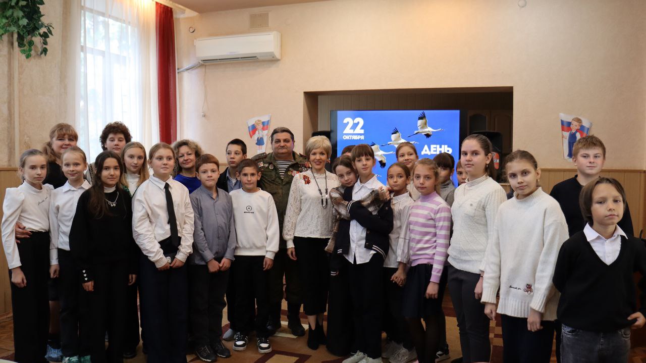 Но, самое главное - это живое общение! Участник СВО Владимир Чачанидзе полностью завладел вниманием пятиклашек своими динамичными историями, юмористической подачей очень серьезной информации, честными ответами на вопросы детей о войне, дронах, боевых товарищах и многом другом.