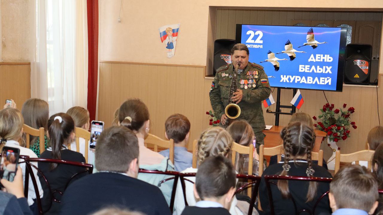 Встреча прошла в теплой, неформальной обстановке. Ее участники успели все: познакомиться, спеть военные песни, рассказать авторские стихотворения о Родине, Донбассе, насладиться игрой на саксофоне, вспомнить героев Великой Отечественной и спецоперации на Донбассе, а также памятные дни воинской славы РФ.