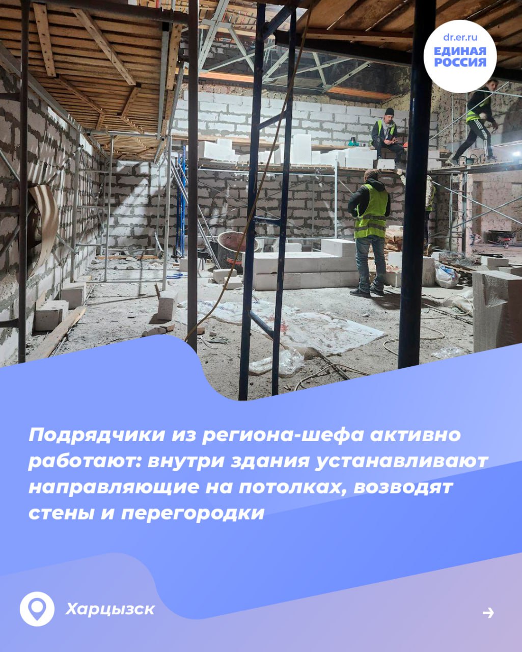 Напомним, восстановление Харцызска идет по проекту Главы ДНР, секретаря Донецкого реготделения Единой России Дениса Пушилина «Возрождаем Донбасс вместе!», народной программе Единой России и при поддержке Нижегородской области – шефа-региона.