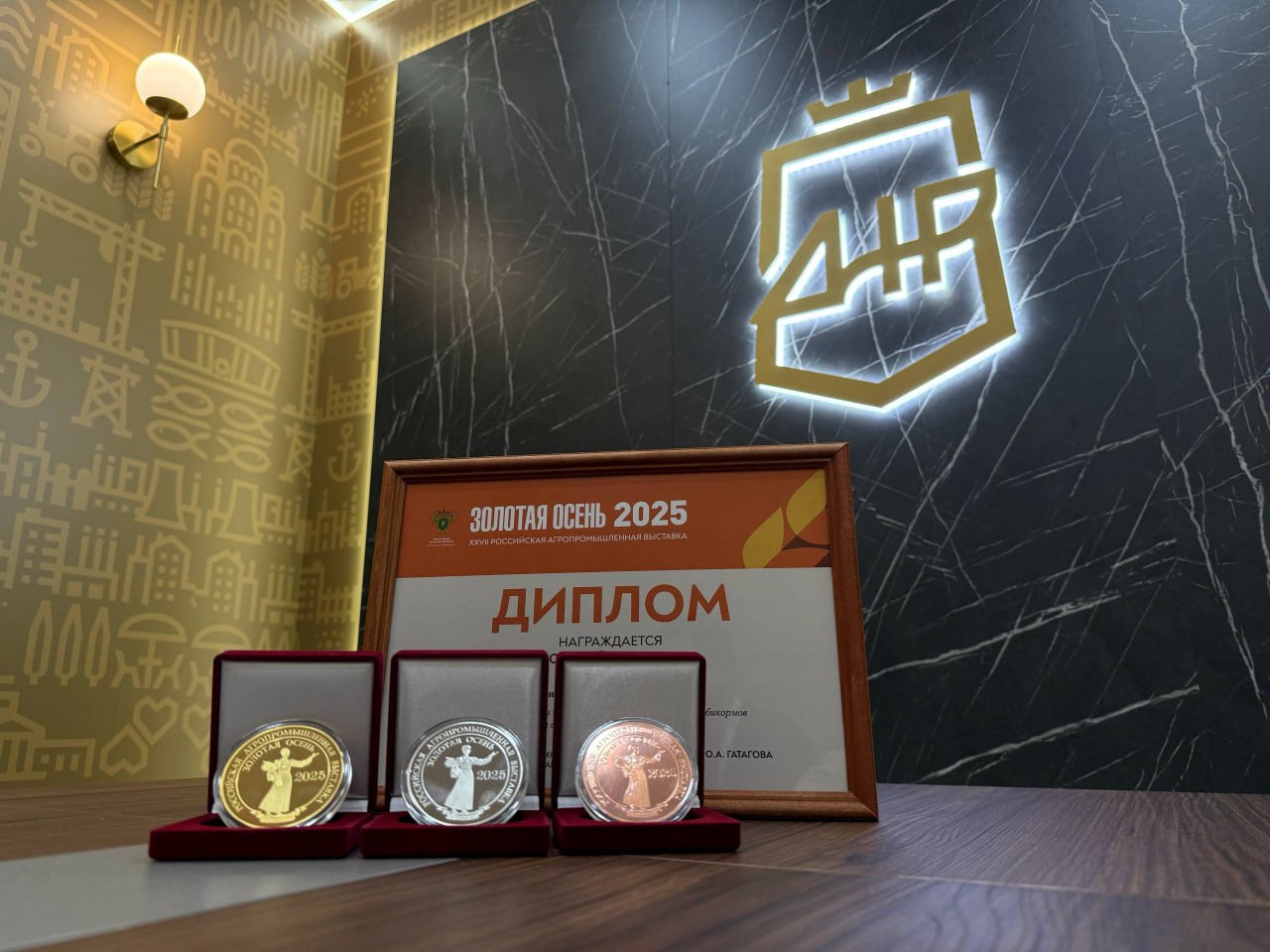По словам заместителя председателя Правительства ДНР, министра сельского хозяйства Артёма Крамаренко, предприятие в третий раз подряд удостоено золотой медали за производство лучших полнорационных комбикормов для сельскохозяйственной птицы. Но на этом триумф не закончился: компания также завоевала серебро за комбикорма для свиней и бронзу за корма для перепелов.