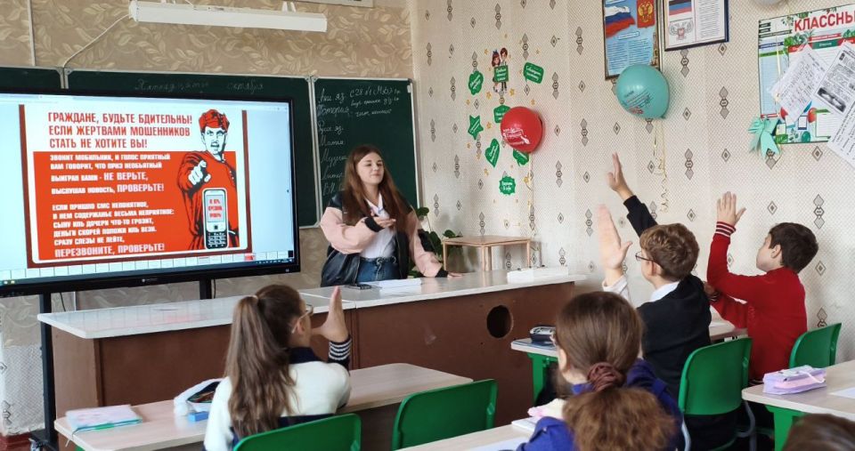 В рамках открытого просветительского урока «НЕТ МОШЕННИКАМ» учащаяся 11 класса, председатель Совета Первых, Ветчинкина Татьяна провела для шестиклассников профилактическое мероприятие.