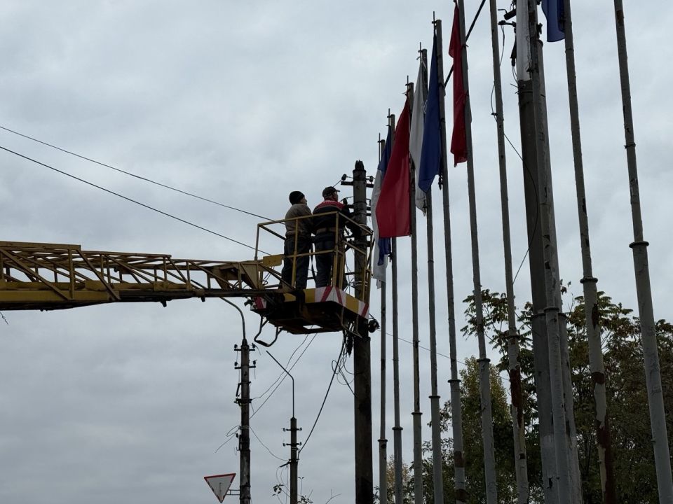 Сегодня, 17 октября, в Кировском внутригородском районе, силами индивидуального предпринимателя Алексея Боршош и филиала № 3 «Макеевкий металлургический завод» ООО «Южный горно-металлургический комплекс Донецк», был произведен демонтаж флагов на флагштоках, на стеле при въезде в Кировский район.
