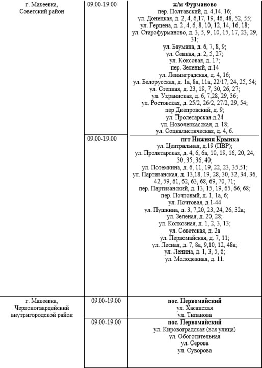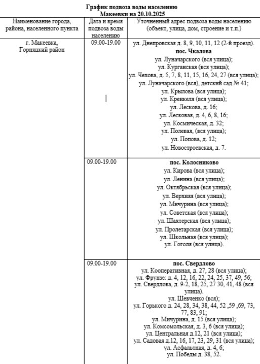 График подвоза воды населению городского округа Макеевка