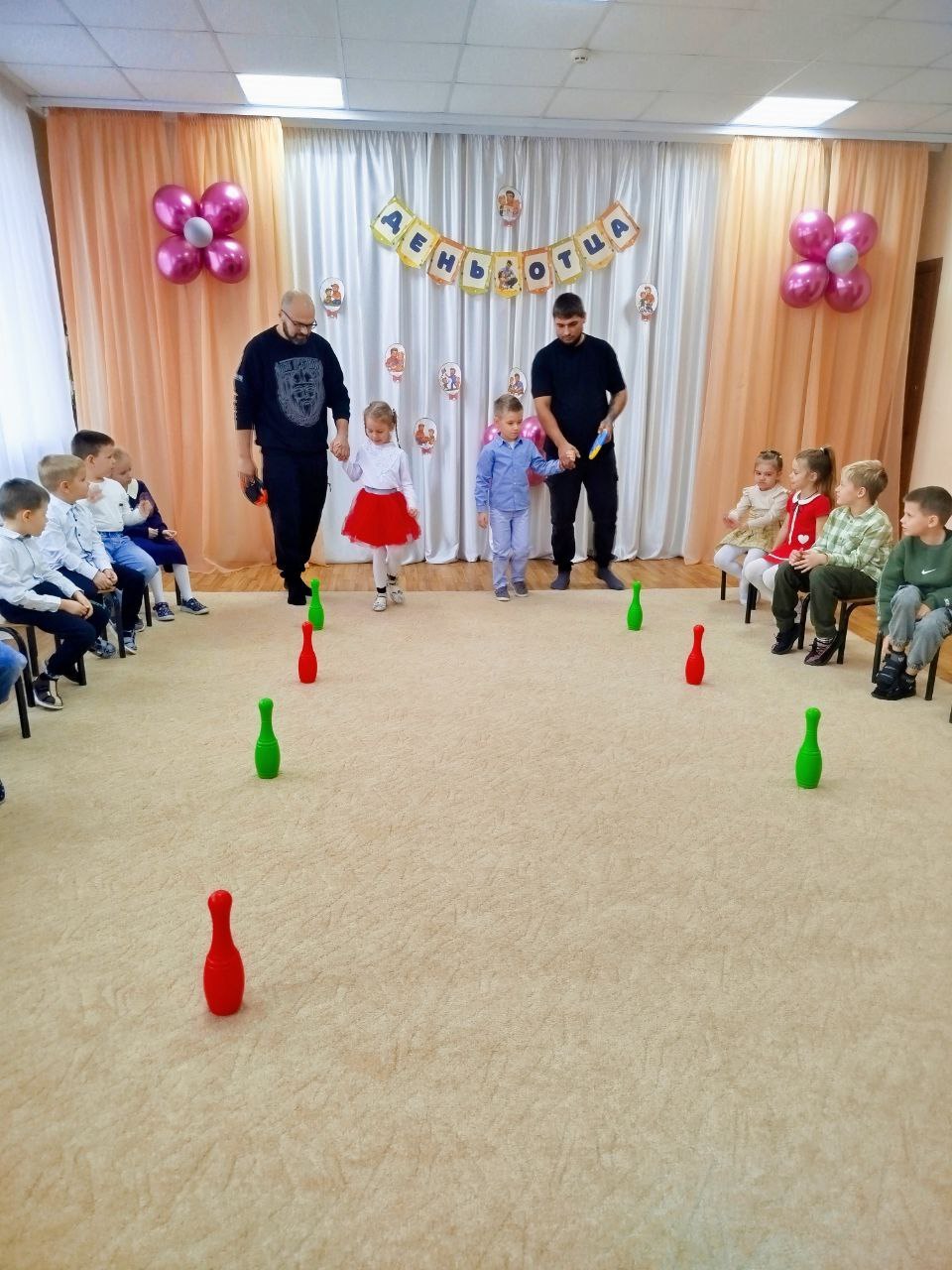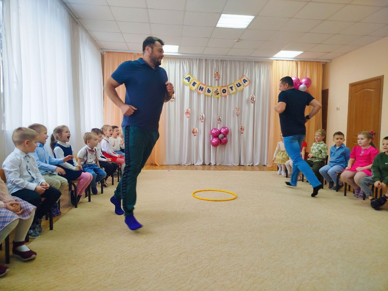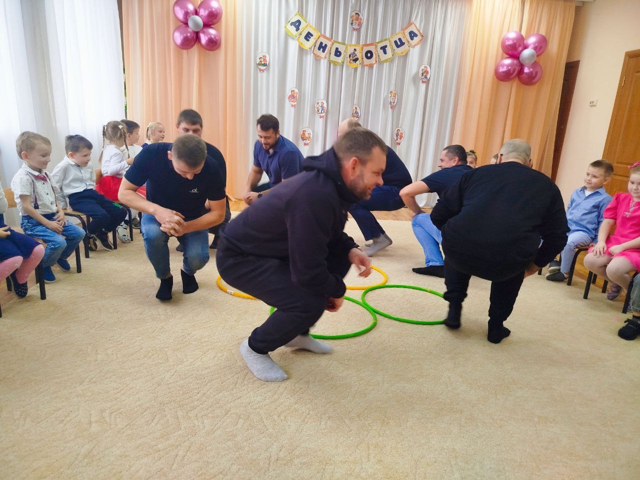 Папы вместе с детьми с энтузиазмом приняли участие в разнообразных эстафетах и конкурсах. Соревновались в ловкости, скорости и командном духе. Каждое задание вызывало улыбки и восторг.