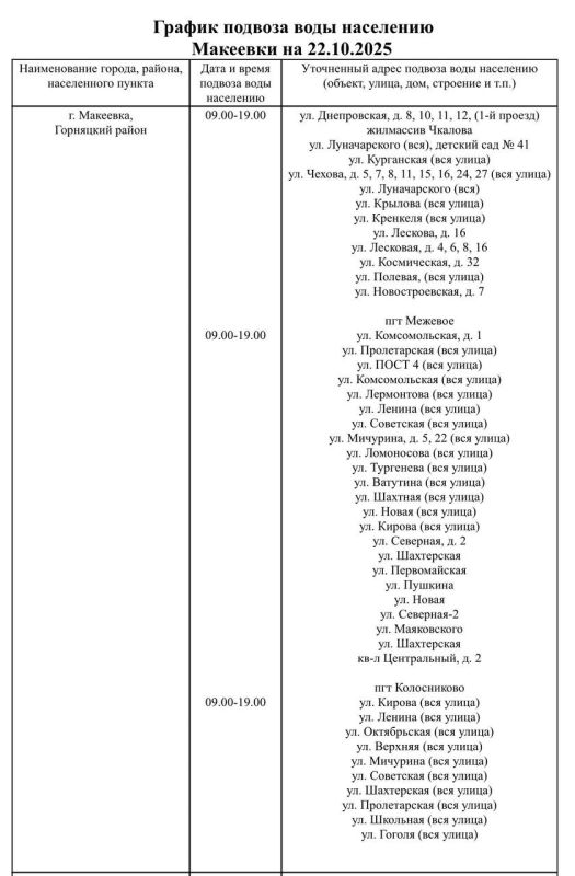 Завтра, 22 октября, в Макеевке будет организован подвоз воды для жителей, в дома которых не поступила вода в установленный графиком день.