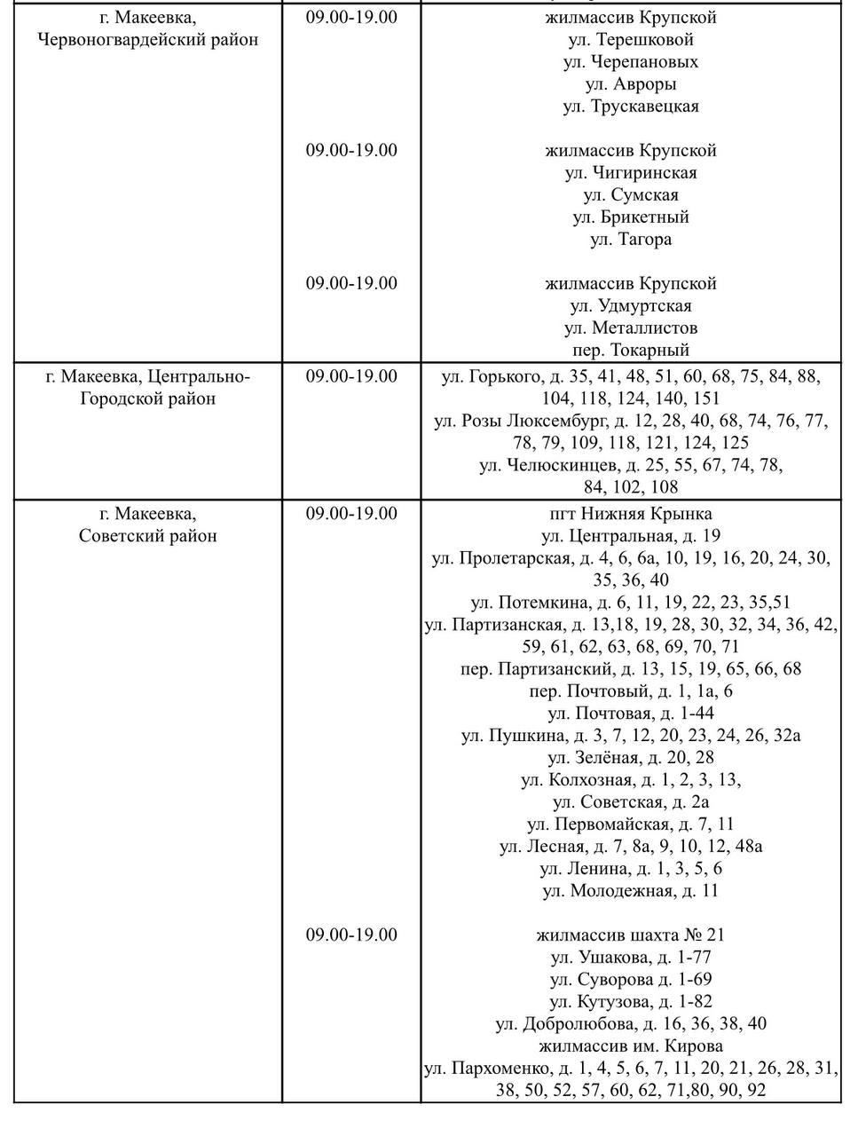 График подвоза воды населению городского округа Макеевка