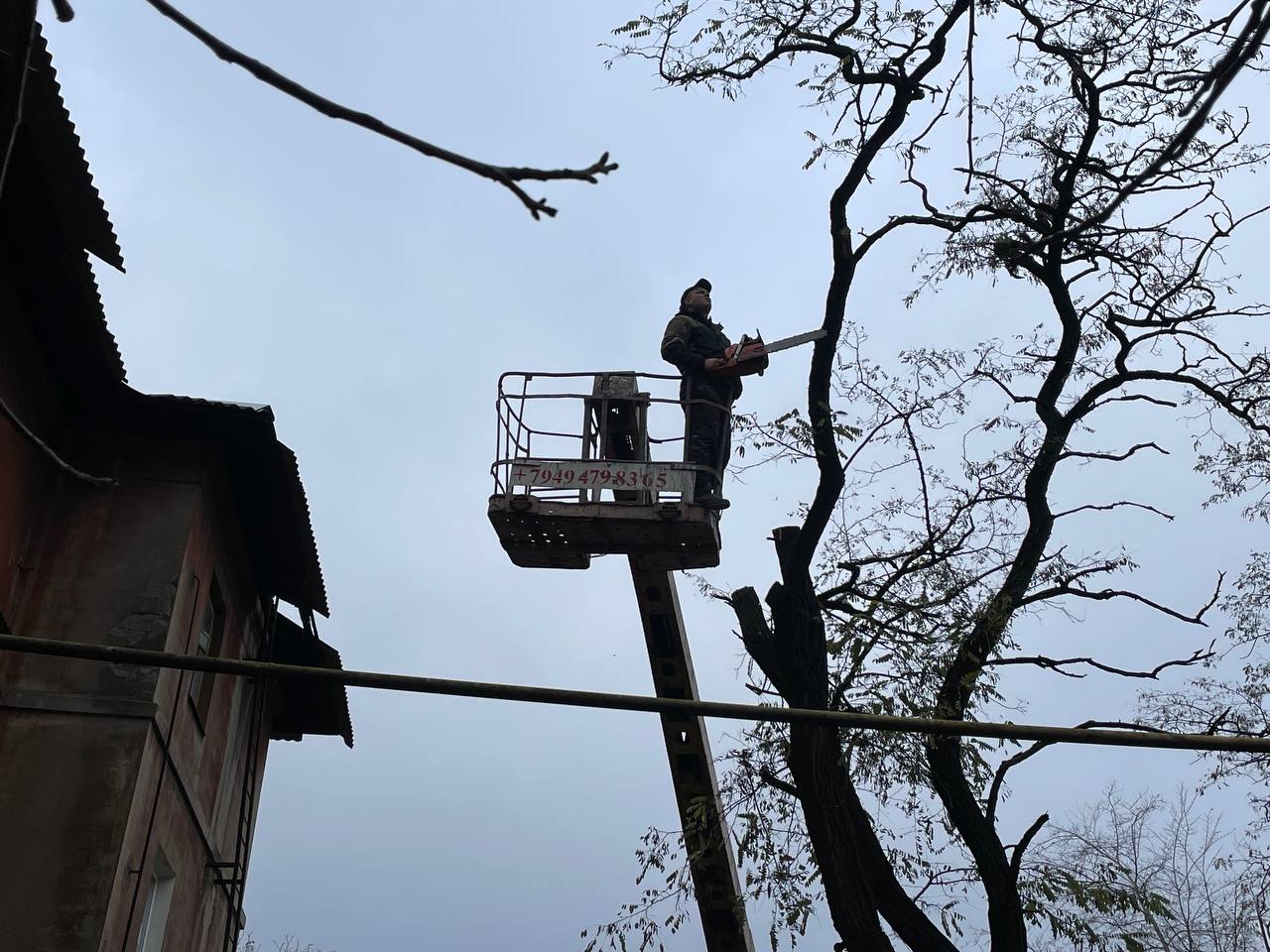 Сегодня, 28 октября, с целью обеспечения безопасности жизнедеятельности населения и предупреждения возникновения аварийных ситуаций Управой Кировского внутригородского района Администрации городского округа Макеевка с привлечением подрядной организации организованы работы по ликвидации аварийного дерева. Работы проведены возле дома № 4 по ул. Юрия Малинина в жилом массиве «Путь Ильича».