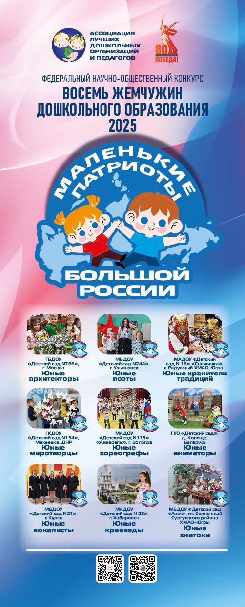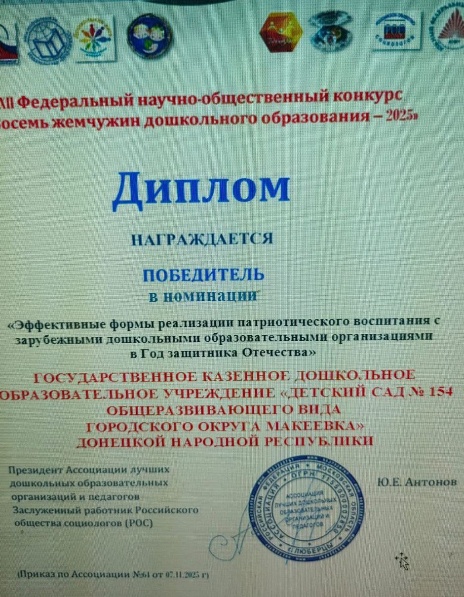 Поздравляем ГКДОУ «ДЕТСКИЙ САД № 154 Г.О. МАКЕЕВКА» ДНР с победой Межрегиональном сетевом проекте «Маленькие патриоты большой России» с международным участием в рамках федерального научно-общественного конкурса «Восемь жемчужин дошкольного образования –2025»