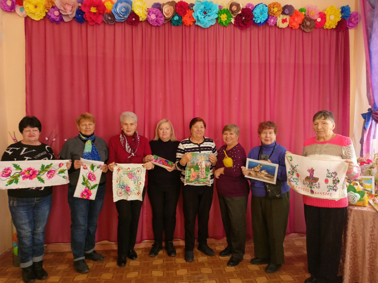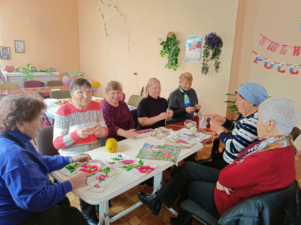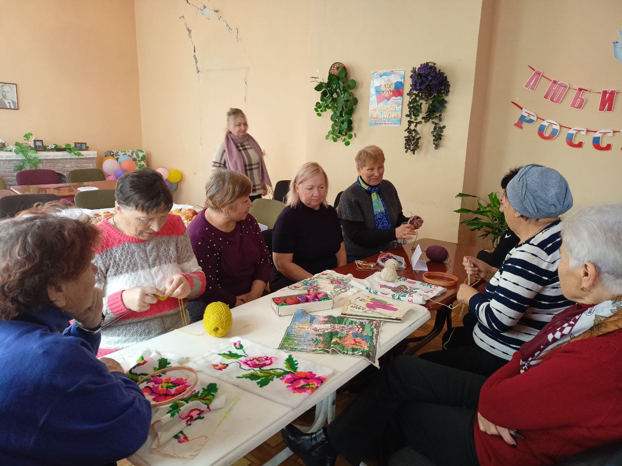 Осеннее панно, плетение из лозы, вышивка, декоративные куклы, лапти - обереги, подушки, вязанные носки, картины - все это демонстрировали наши получатели социальных услуг. Прикладные виды творчества являются важной составляющей психологического благополучия пожилых людей. Рукоделие приносит спокойствие и умиротворение душе. Освоение новых умений и навыков развивает новые нейронные связи в головном мозге. Это крайне необходимо пожилому человеку для профилактики возрастных изменений.