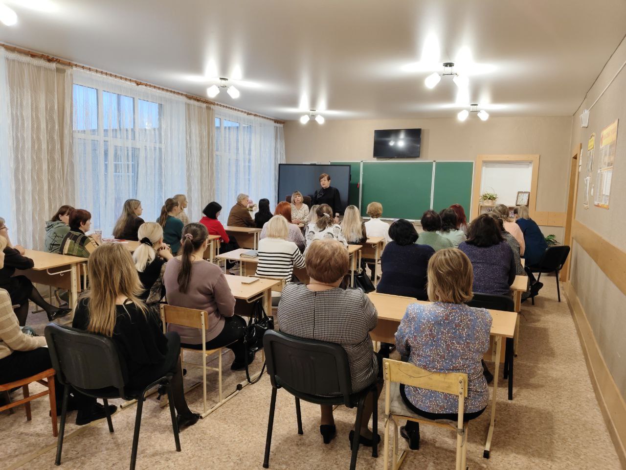 Юлия Крюкова совместно с заместителем главы г.о. Макеевки Ириной Лях по поручению Главы ДНР Дениса Пушилина провели встречу с трудовым коллективом школы №62