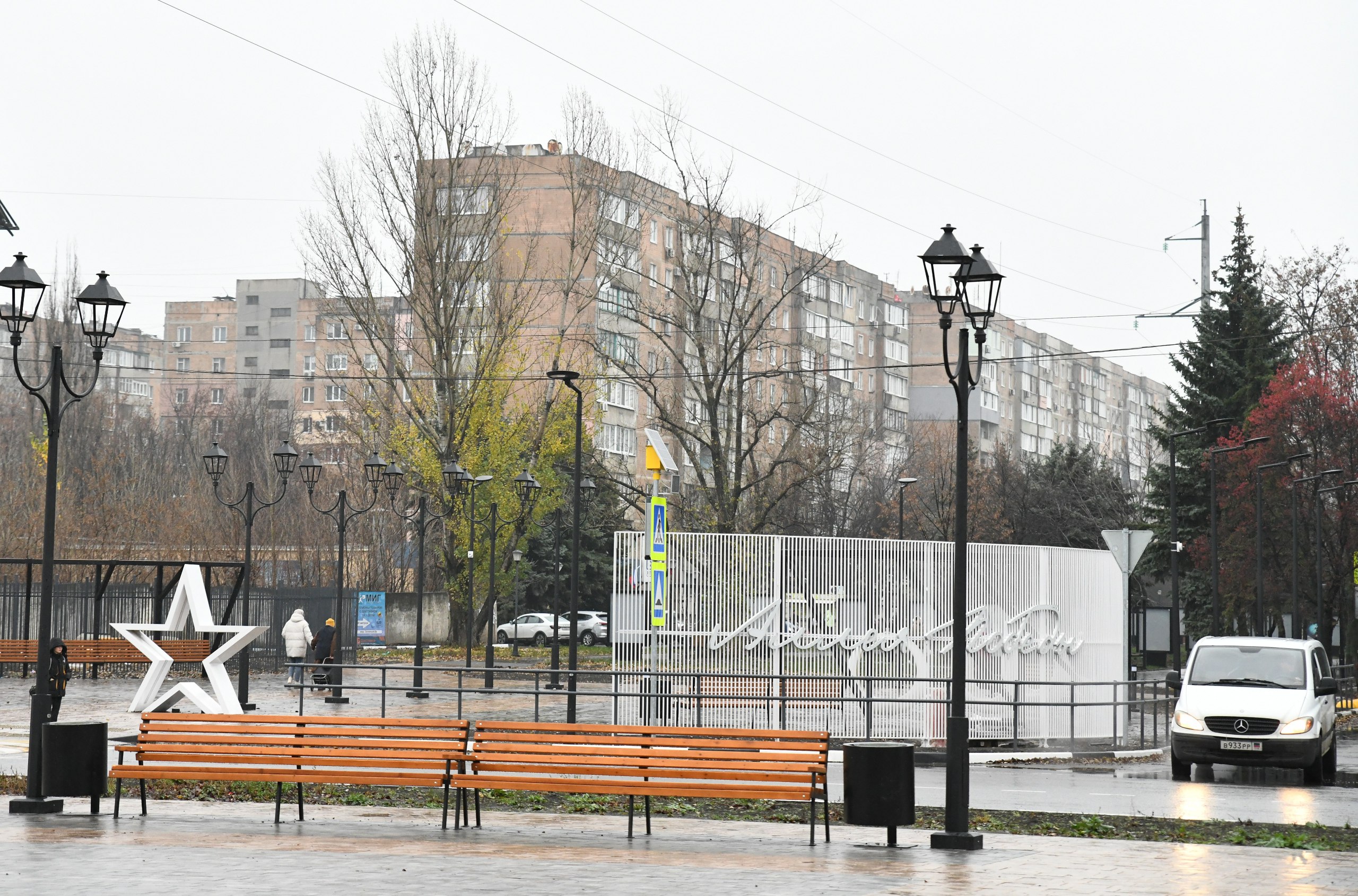 В этом году проделана большая работа по благоустройству Аллеи Победы в Горняцком районе. Там уже уложена брусчатка возле памятника, сделана парковка, освещение и видеонаблюдение. Также установлены арт-объекты в виде названия объекта, звезды и торговых павильонов.
