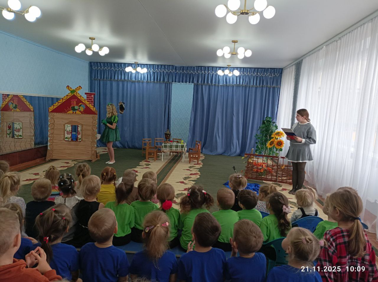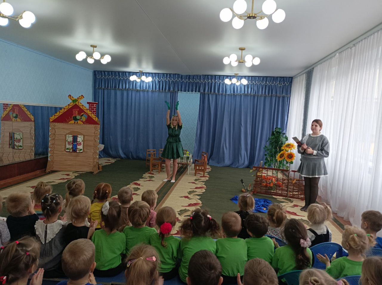Юные артисты блестяще исполнили свои роли, а дошкольники с удовольствием следили за развитием событий, поддерживая артистов.