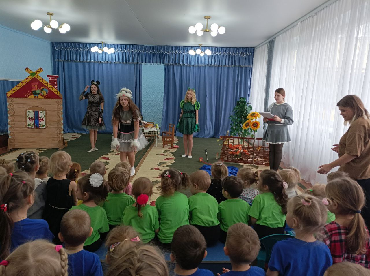 Юные актеры, облаченные в яркие костюмы, с энтузиазмом вжились в роли сказочных персонажей. Звонкие голоса разносились по залу, а малыши, затаив дыхание, следили за развитием сюжета. Смех и аплодисменты стали лучшей наградой для начинающих артистов.