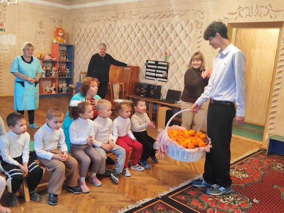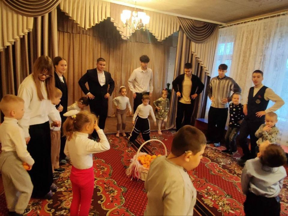 Лицеисты познакомились с малышами, поиграли с ними, станцевали весёлый танец, вручили сладкие подарки и сделали фото на память.