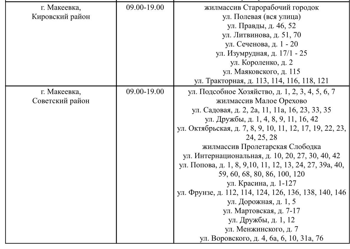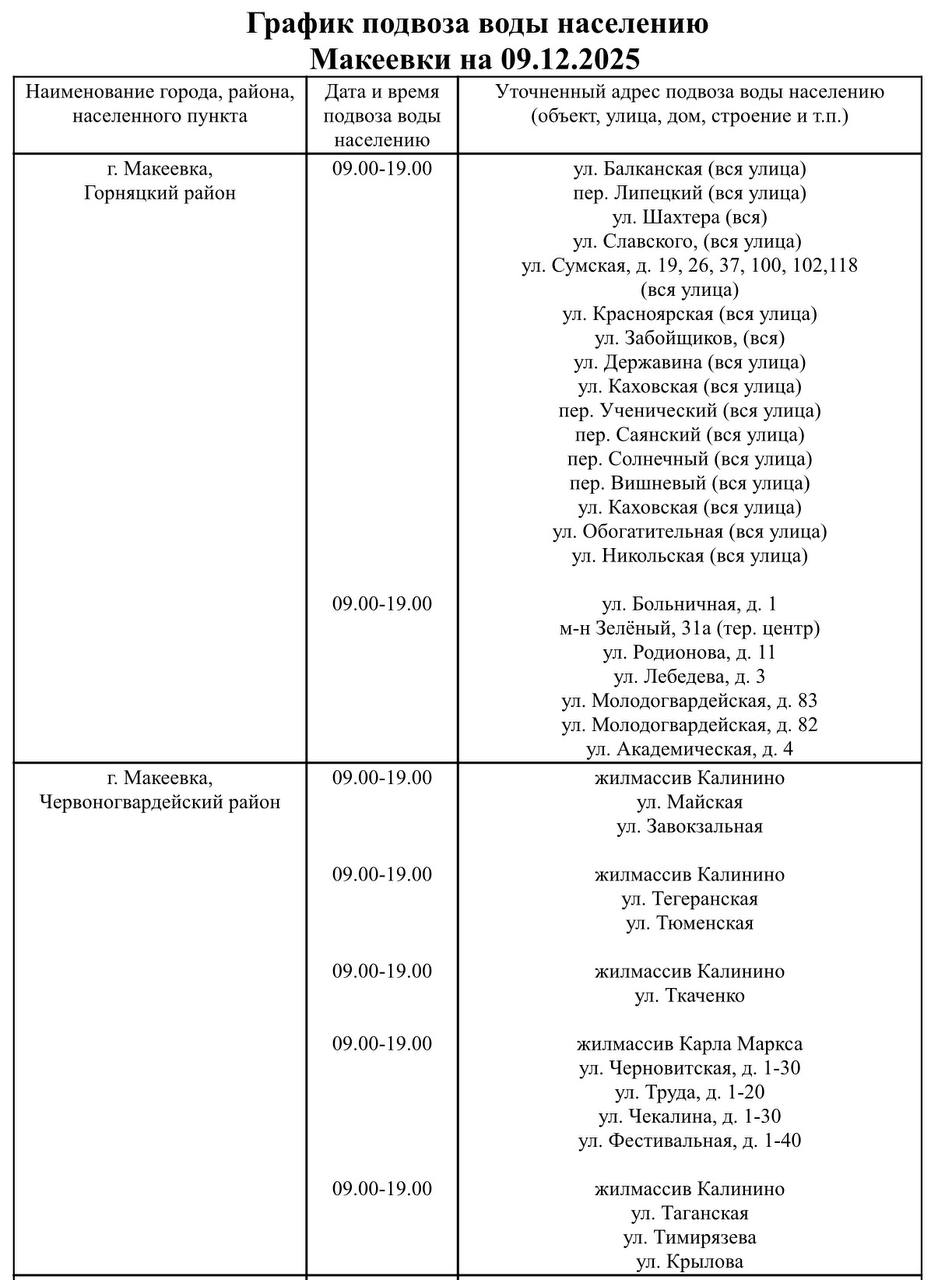 График подвоза воды населению городского округа Макеевка
