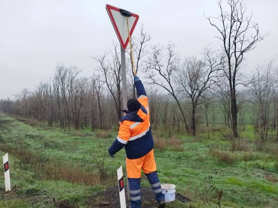 установили дорожные знаки на автомобильной дороге Трепельное - /Донецк - Харцызск - Амвросиевка - до границы Ростовской области/