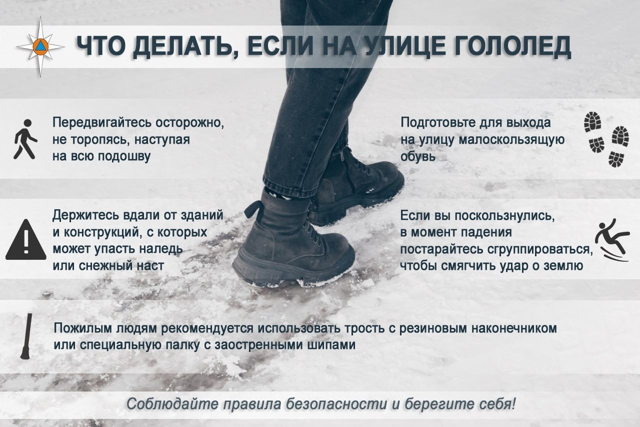 Чтобы уменьшить вероятность падения, необходимо соблюдать следующие правила поведения при гололёде: