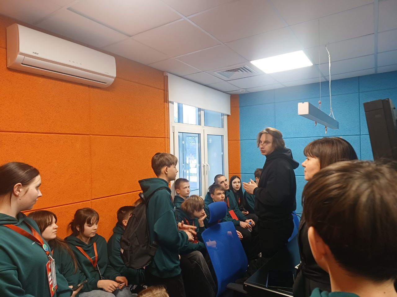 В киностудии ребята посетили мастер-классс по актёрскому мастерству от актёра театра и кино, педагога по актёрскому мастерству Александра Мусонова, где попробовали себя в разных ролях и поучаствовали в съемках небольших сцен.