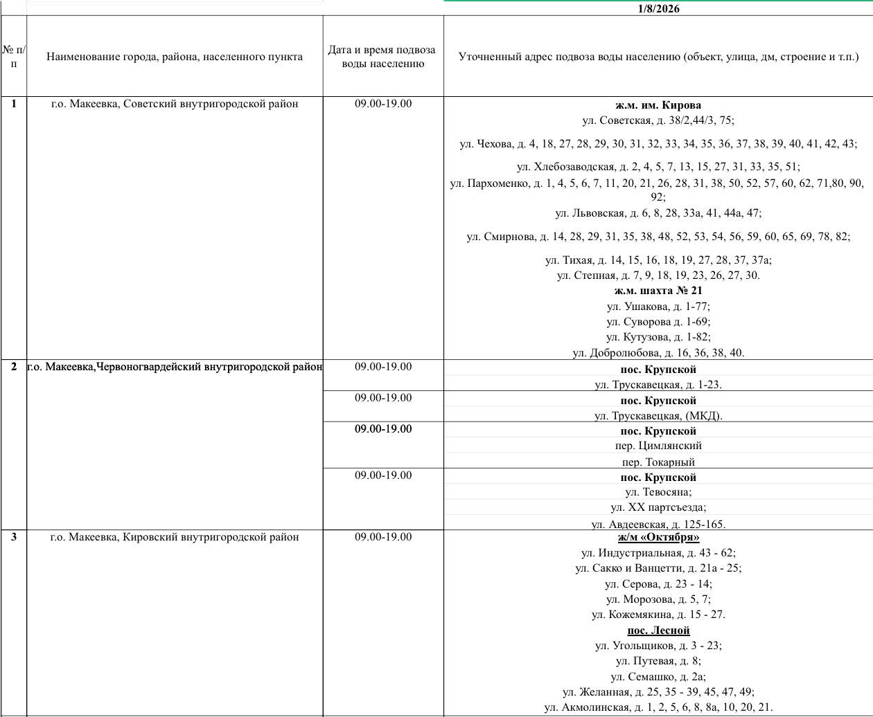Завтра, 9 января, в Макеевке будет организован подвоз воды для жителей, в дома которых не поступила вода в установленный графиком день. Telegram | ВКонтакте | Одноклассники | Сайт | MAX | ...