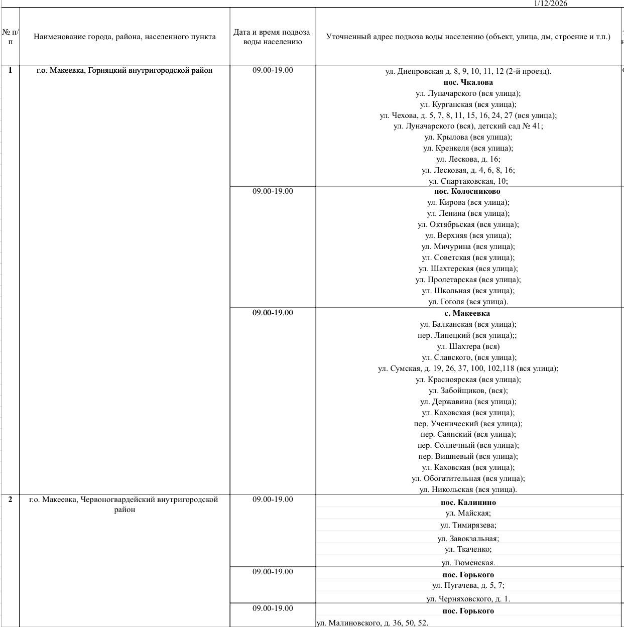 Завтра, 12 января, в Макеевке будет организован подвоз воды для жителей, в дома которых не поступила вода в установленный графиком день. Telegram | ВКонтакте | Одноклассники | Сайт | MAX | ...