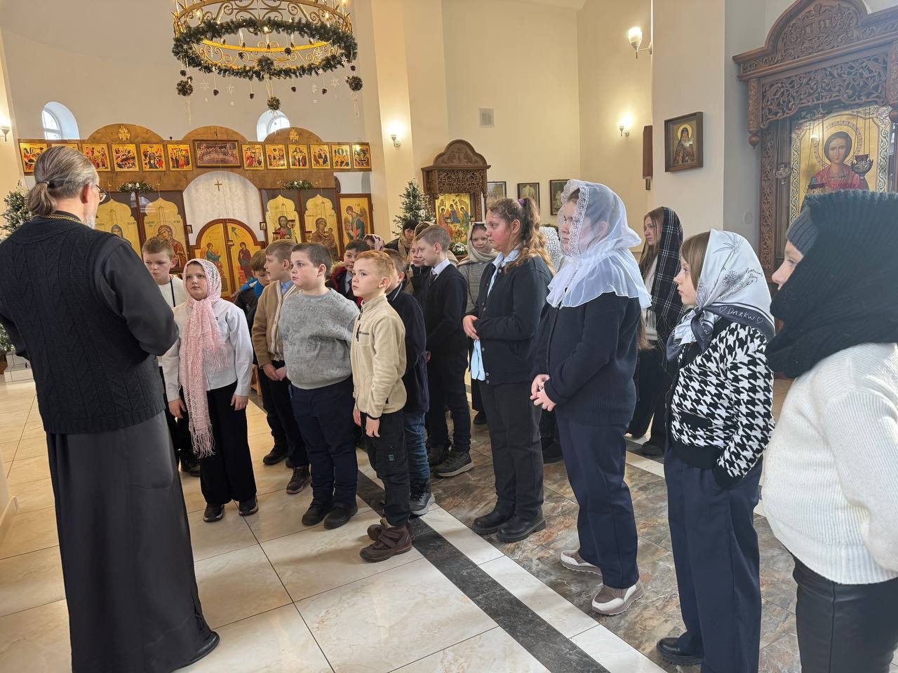 Учащиеся 4-х классов ГБОУ "СШ № 57 Г.О. МАКЕЕВКА", изучающие основы православной культуры, после зимних каникул отправились в храм, где радушный отец Антоний встретил их как давних друзей. Он стал для ребят не просто гидом, а мудрым рассказчиком, который просто и глубоко поведал о смысле Рождества Христова, его вековых традициях и глубоком значении.