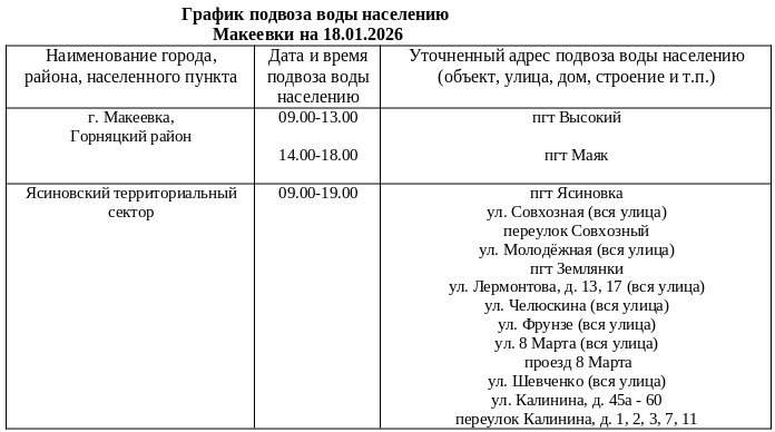 Завтра, 18 января, в Макеевке будет организован подвоз воды для жителей, в дома которых не поступила вода в установленный графиком день. Telegram | ВКонтакте | Одноклассники | Сайт | MAX | ...