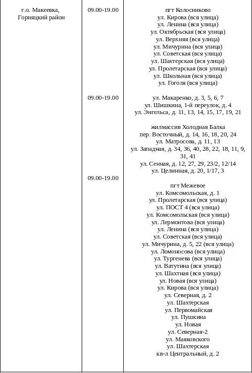 График подвоза воды населению городского округа Макеевка