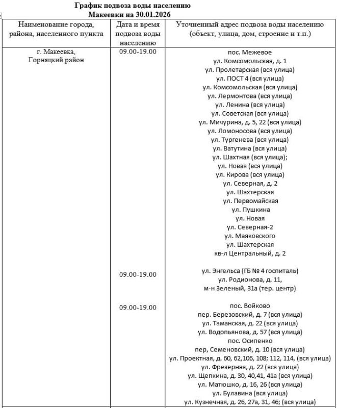 График подвоза воды населению городского округа Макеевка