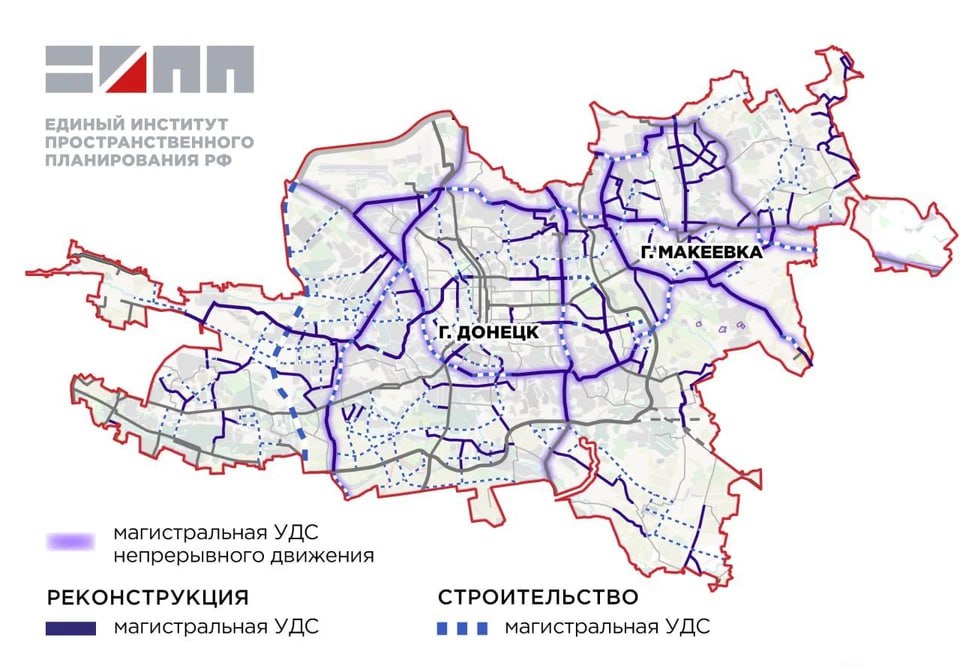 Соответствующие предложения подготовил Единый институт пространственного планирования РФ в рамках разработки генеральных планов городских округов Донецк и Макеевка. В основу новой улично-дорожной сети заложено формирование четырех хордовых направлений: