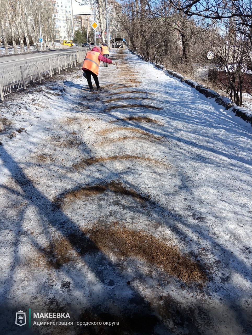по уборке тротуаров, проезжих частей, остановок общественного транспорта, посыпке противогололёдными материалами во всех районах города;