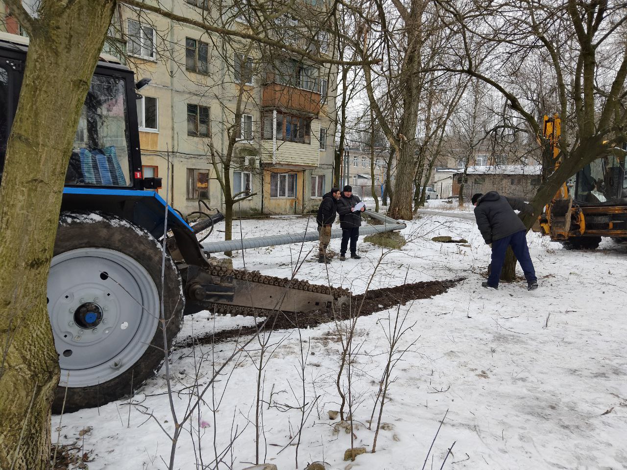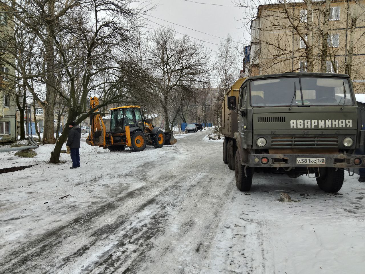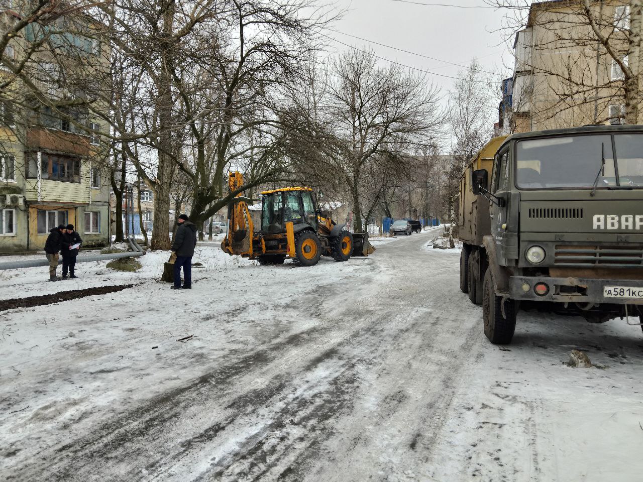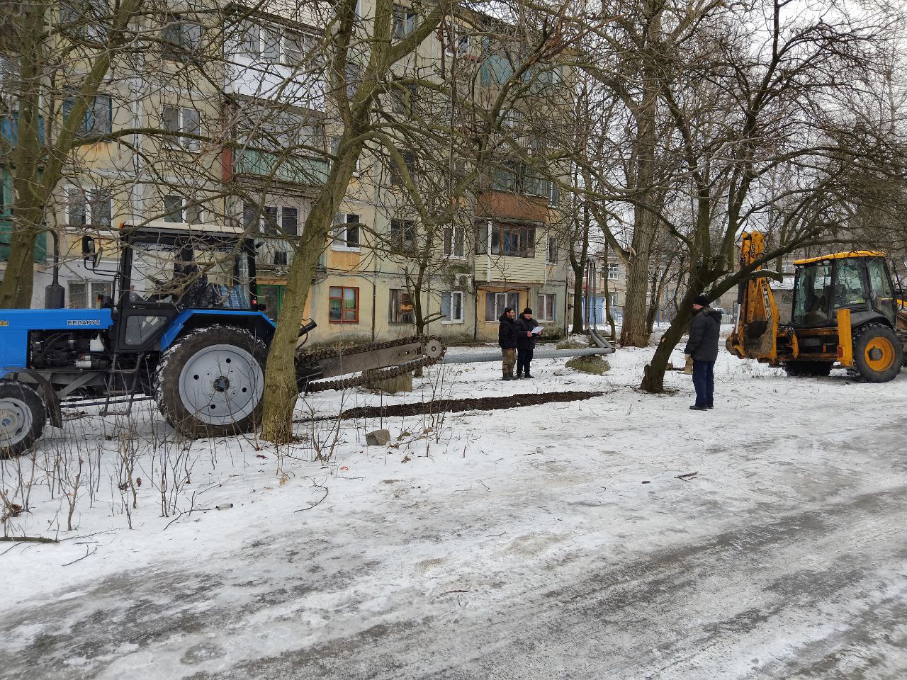 Сегодня, 12 февраля, Филиалом «Макеевское ПУВКХ» ГУП ДНР «Вода Донбасса» ведутся работы по замене аварийного участка канализационного коллектора возле домов №№ 27-28 на квартале Химик