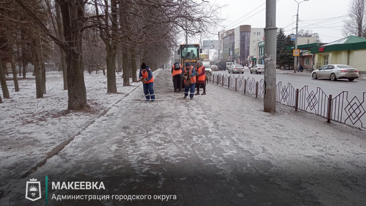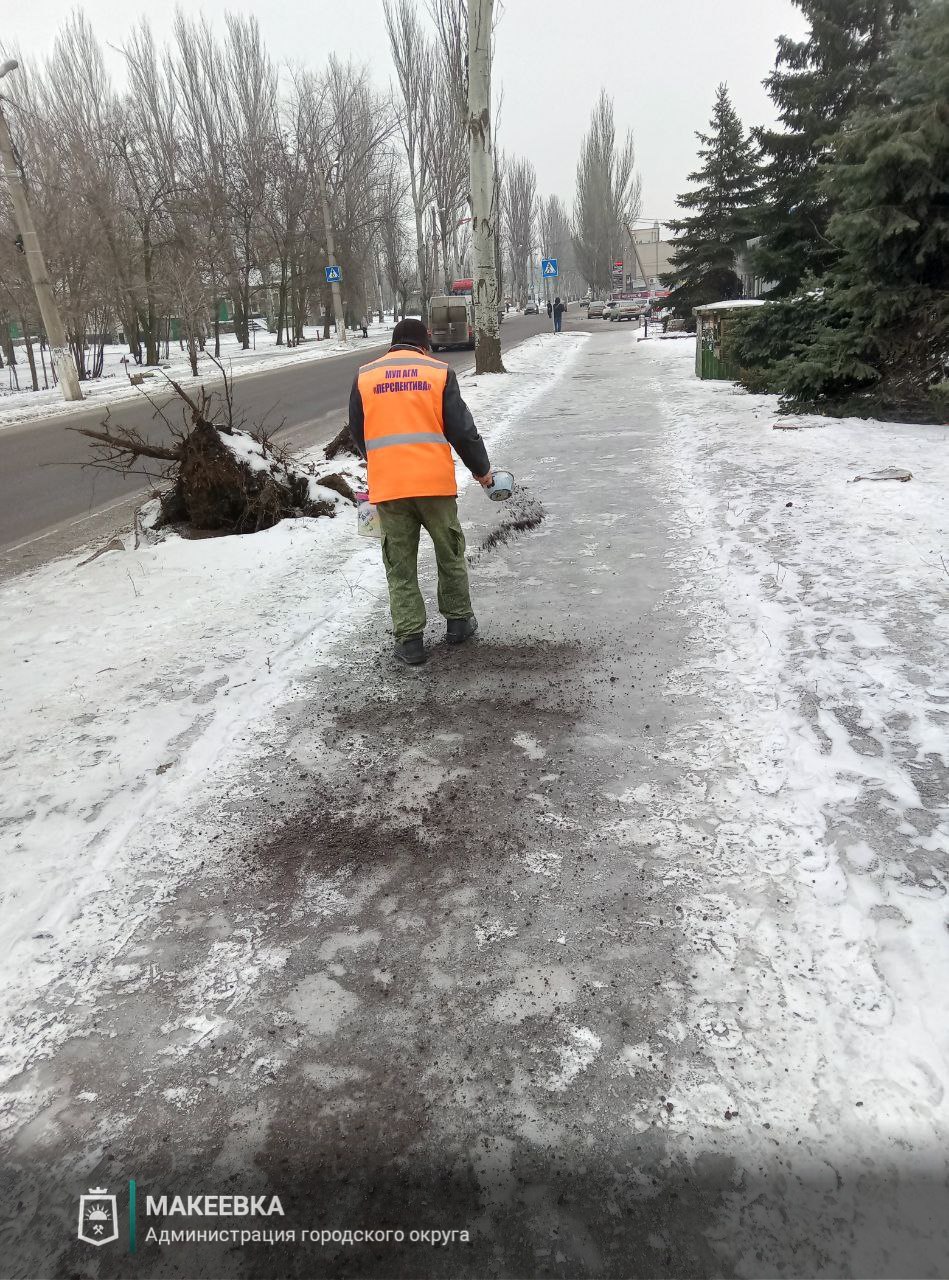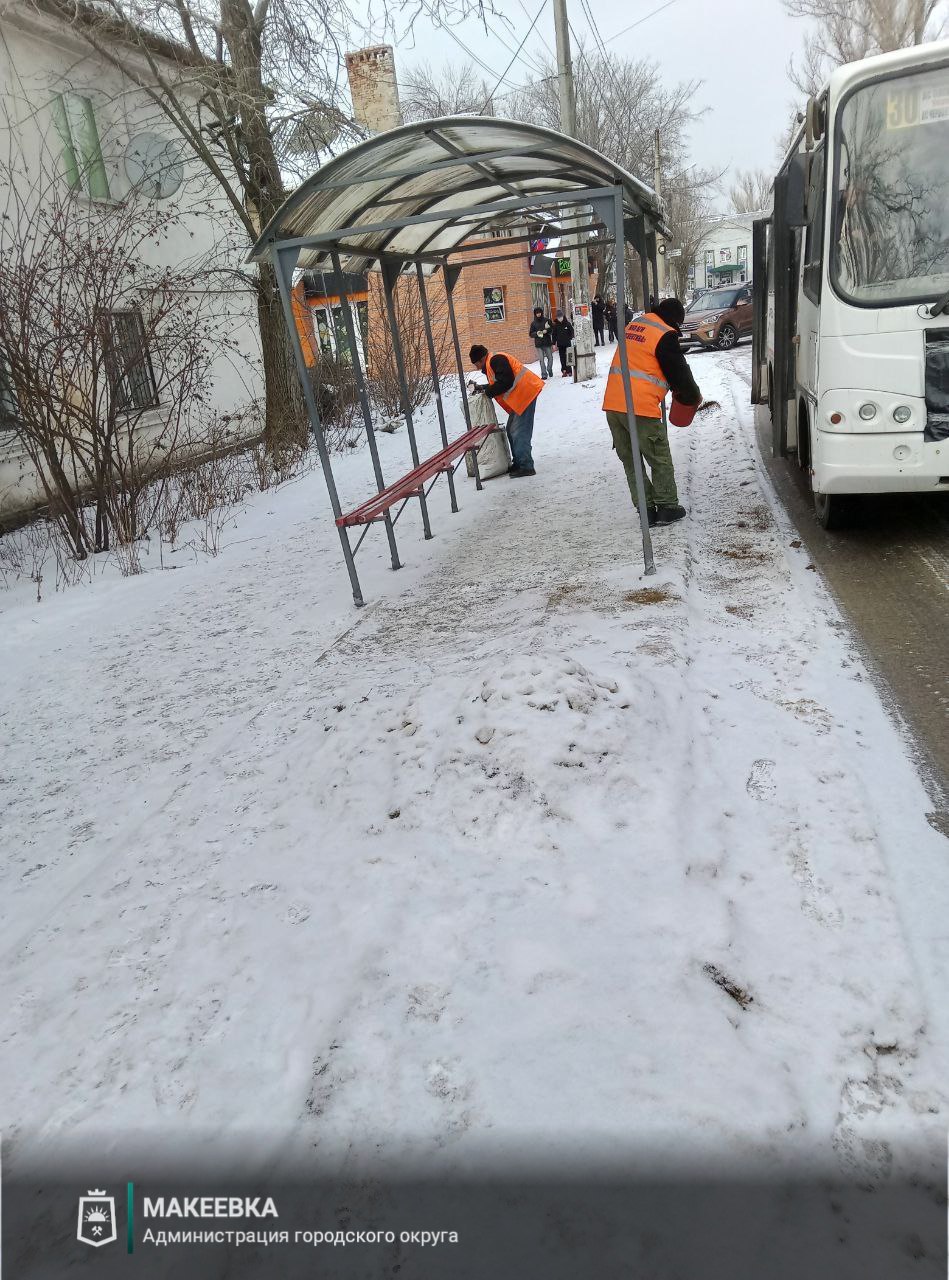 по уборке тротуаров, пешеходных зон, остановок общественного транспорта, посыпке противогололёдными материалами во всех районах города.