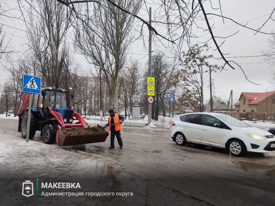 Работы по посыпке противогололедными материалами продолжаются