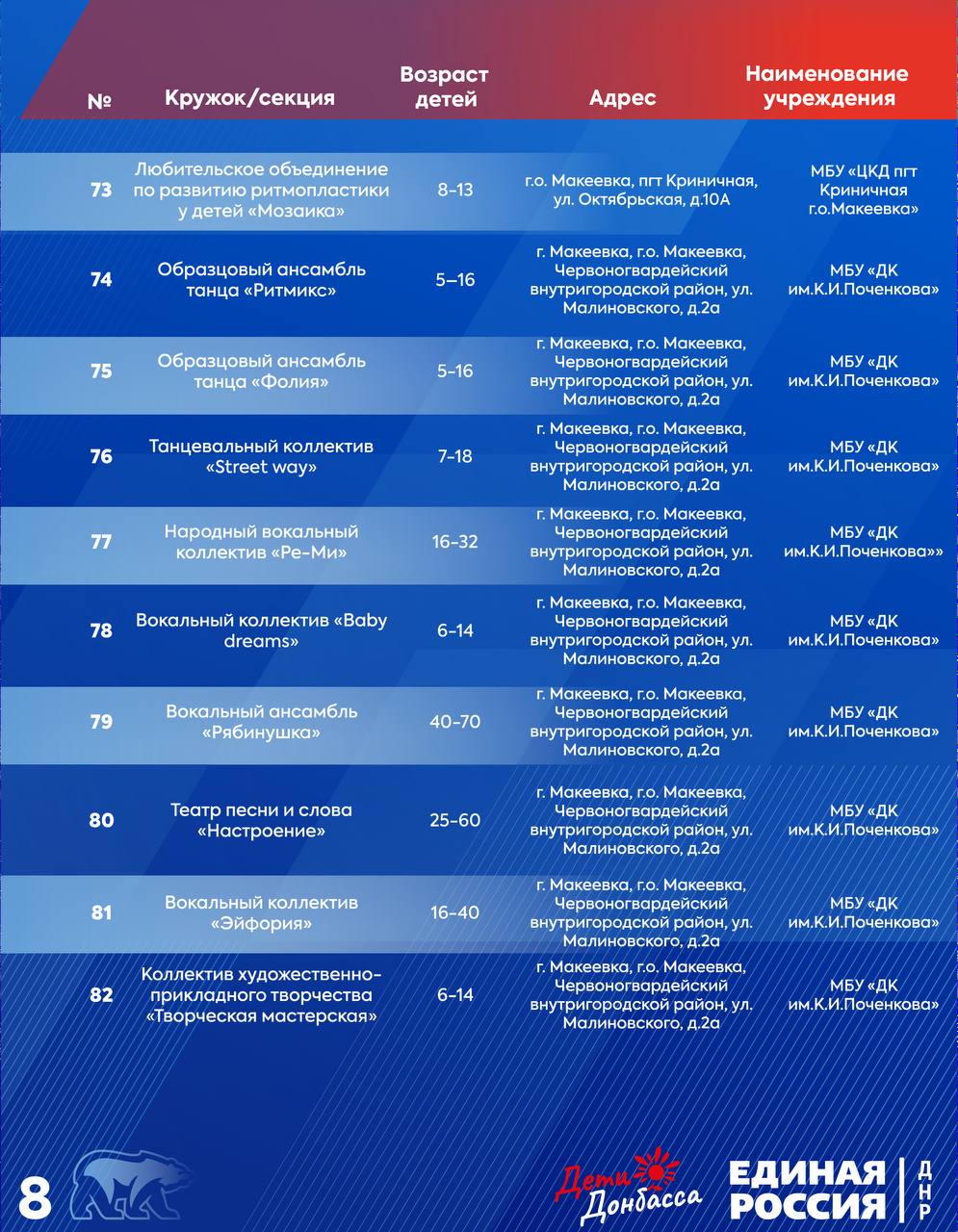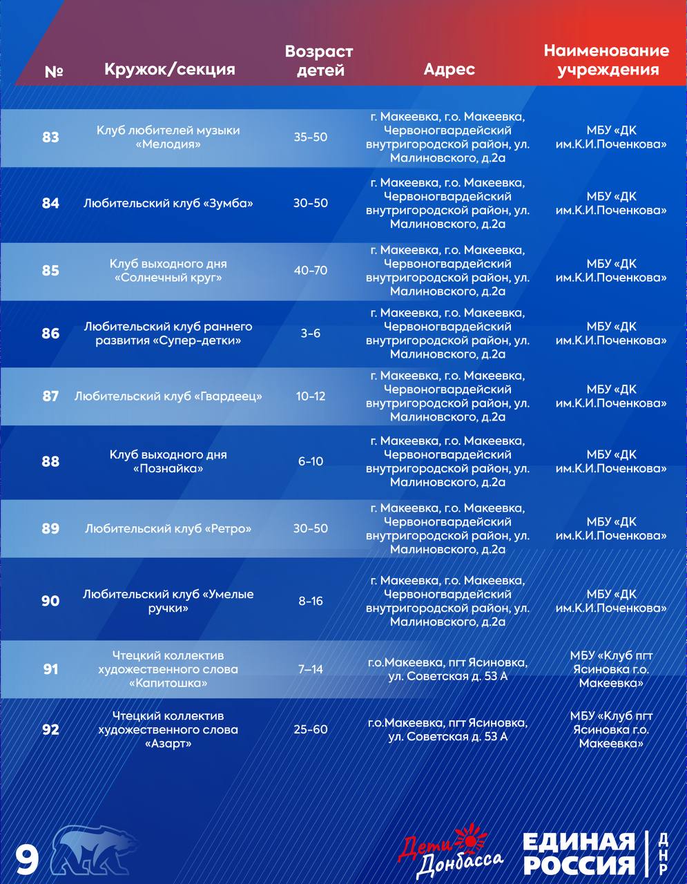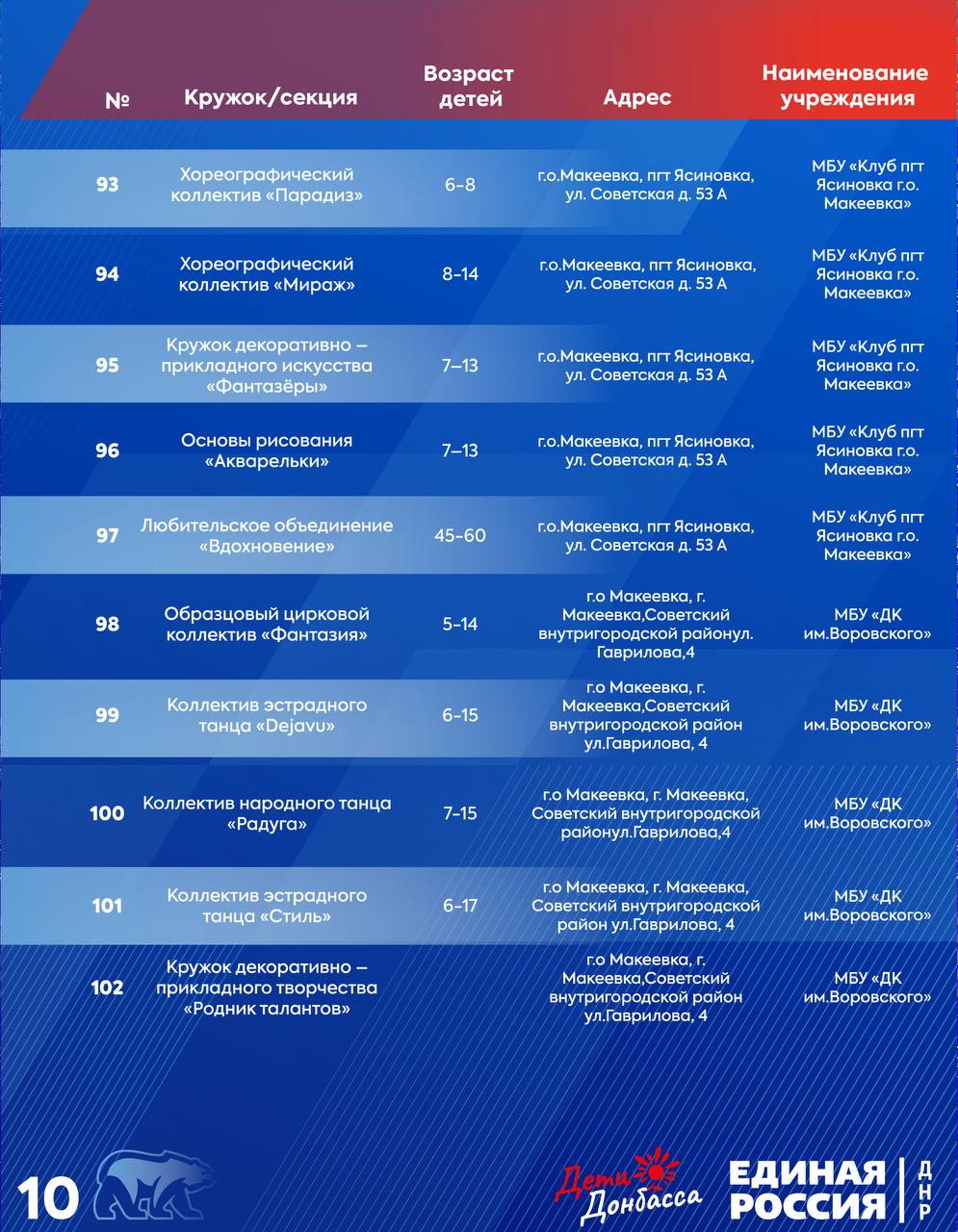 Горняцкий район:водоснабжение:ул. Пономаренко;ул. Южная, д. 9;ул. Советская, д. 35. Советский район: водоснабжение:ул. Калинана;водоотведение:41 кв-л, д. 5.Червоногвардейский район: водоснабжение:м-н Калининский, д. 10;ул. Филатова;ул. Комарова...