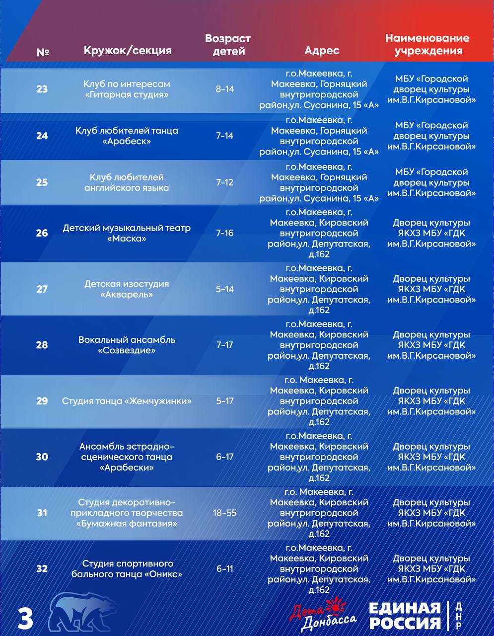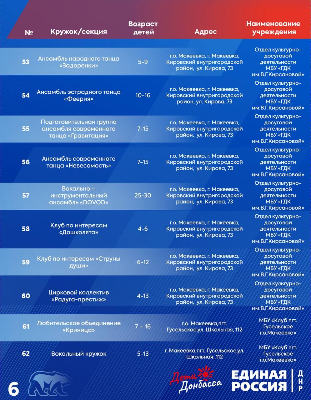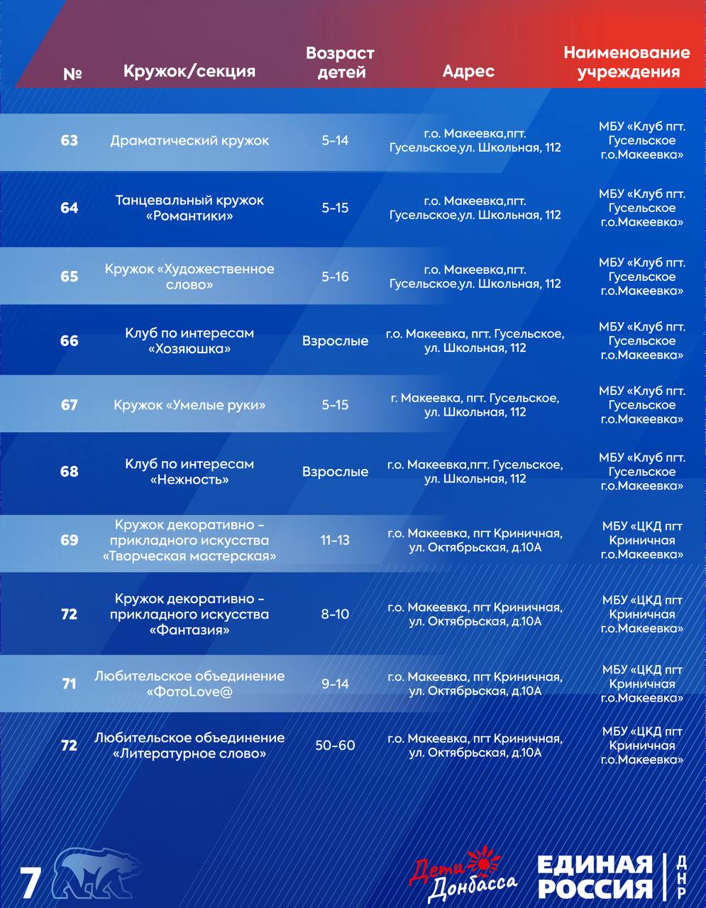 Горняцкий район:водоснабжение:ул. Пономаренко;ул. Южная, д. 9;ул. Советская, д. 35. Советский район: водоснабжение:ул. Калинана;водоотведение:41 кв-л, д. 5.Червоногвардейский район: водоснабжение:м-н Калининский, д. 10;ул. Филатова;ул. Комарова...