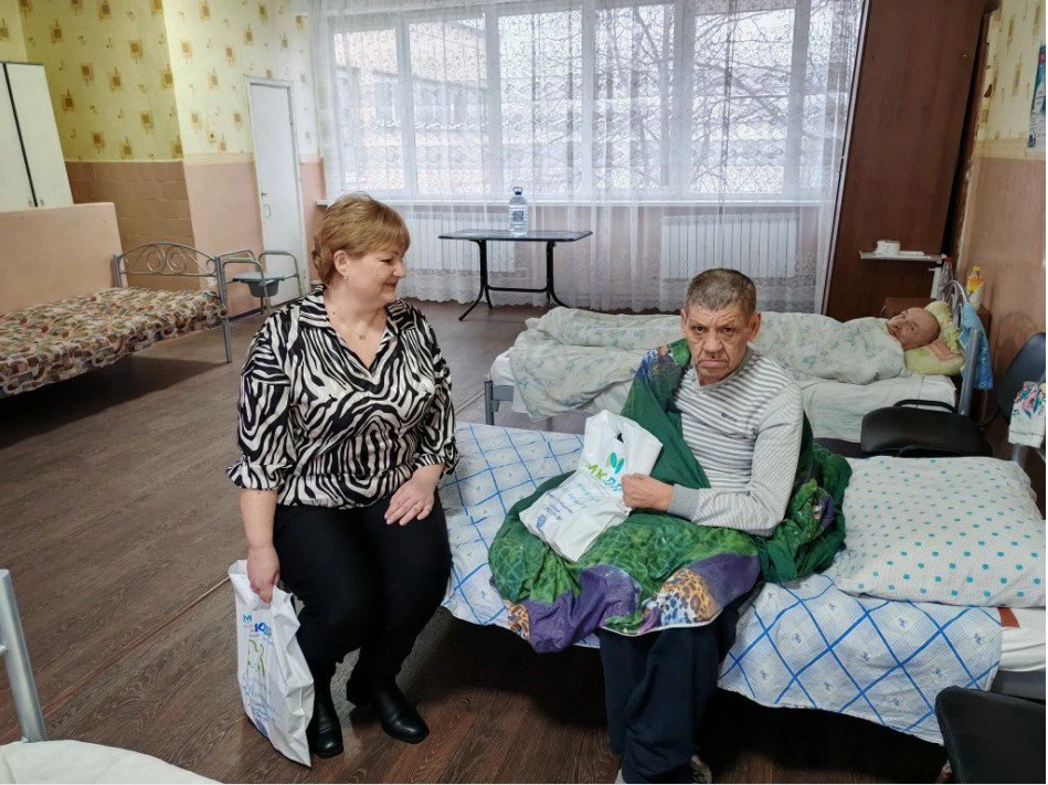 Ирина Валентиновна и Валентина Витальевна поздравили подопечных социального центра, пожелали им здоровья, стабильности, счастливых и светлых дней и вручили им продуктовые наборы, предоставленные Муниципальным унитарным предприятием администрации города Макеевки «Комбинат детского питания».