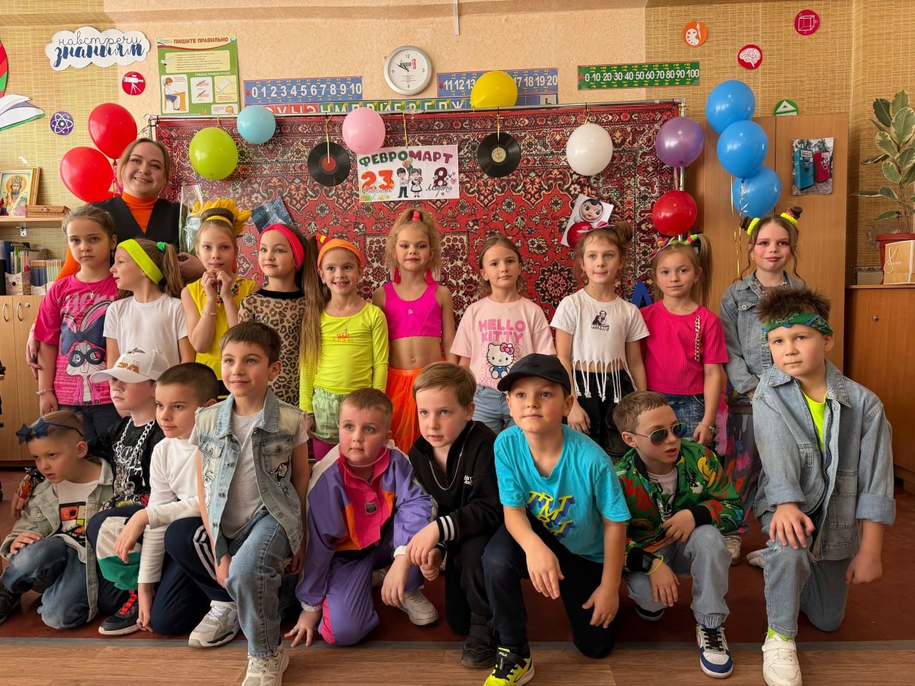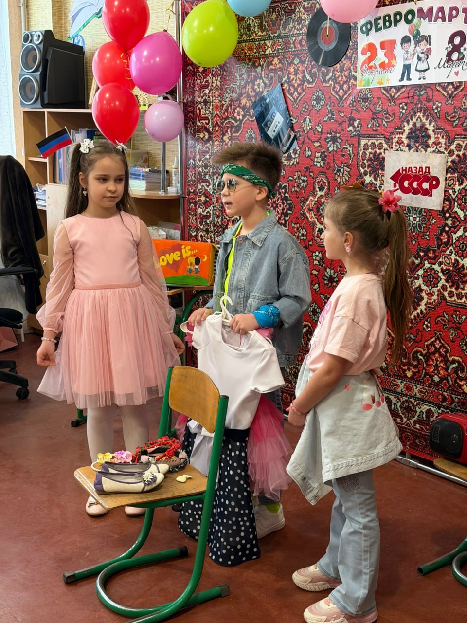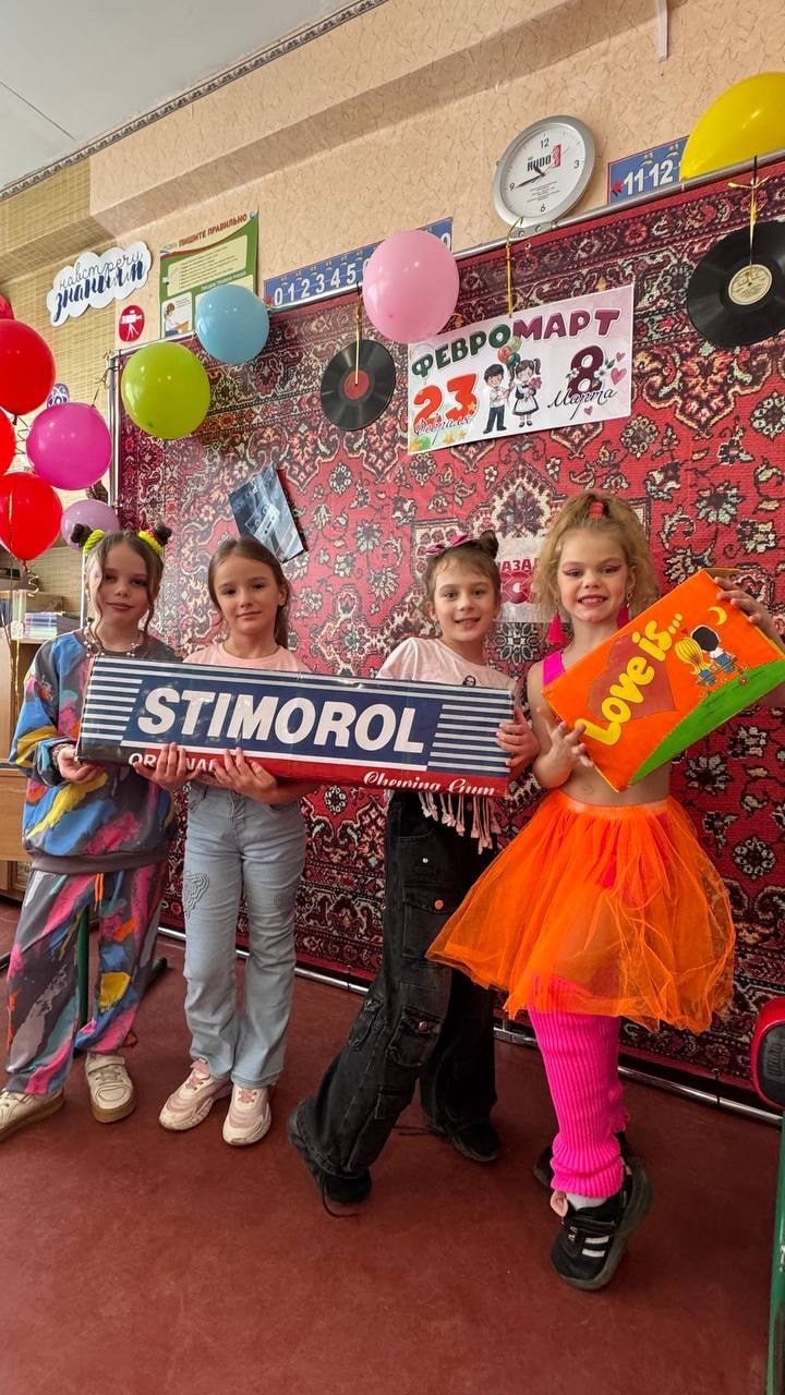 Накануне 8 Марта в 1-А классе ГБОУ "ЛИЦЕЙ № 1 Г.О. МАКЕЕВКА" состоялось грандиозное событие – праздник "Февромарт", стилизованный под атмосферу 90-х годов. Это яркое и душевное мероприятие объединило поздравления с Днем защитника Отечества и Международным женским днём.