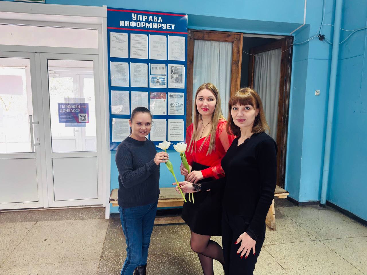 Сотрудники отдела по работе с семьей с детьми Филиала № 13 Республиканского центра социальной поддержки Советского внутригородского района города Макеевки провели праздничную акцию в Управе района. Мероприятие было посвящено 8 Марта.