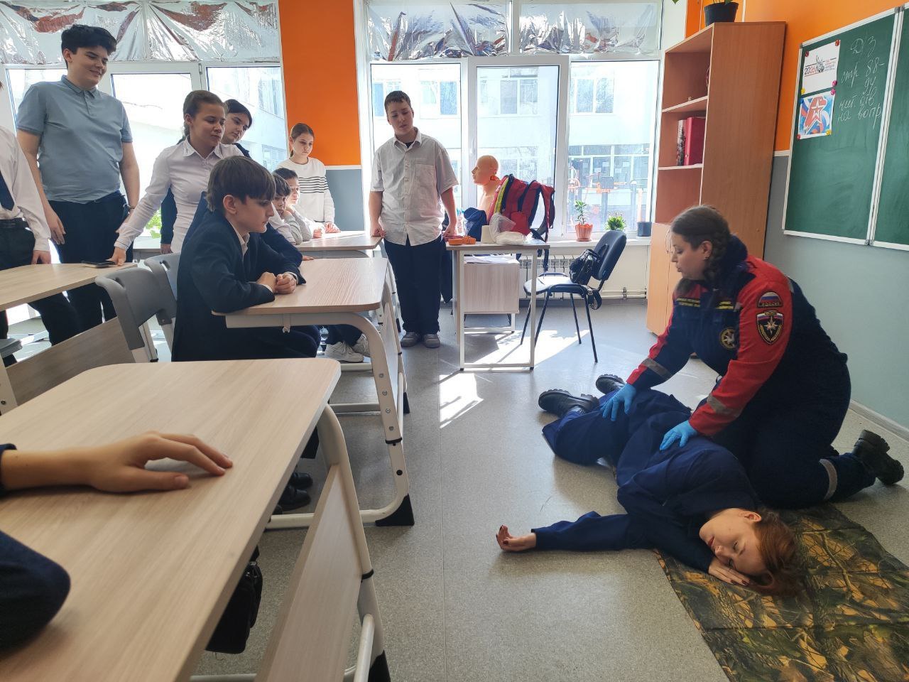 В Харцызской школе № 2 состоялись мастер-класс по оказанию первой помощи и тренировочная эвакуация, проведенная с учетом различных обстоятельств и меняющихся условий. Активисты ШСО «Будущие спасатели России» под наставничеством ССО ВСКС ДОННАСА разобрали алгоритм действий при пожаре и во время обстрелов.