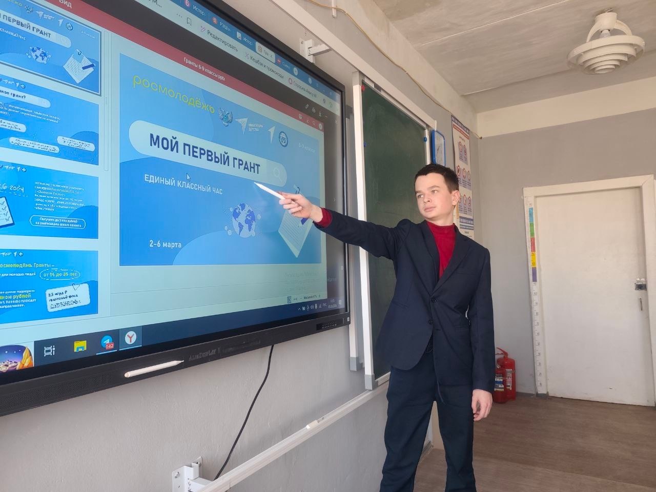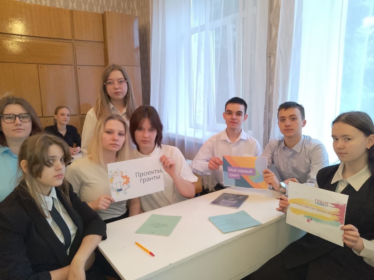 Основной задачей занятия стало ознакомление школьников с возможностями получения грантовой поддержки для реализации их собственных идей и проектов.