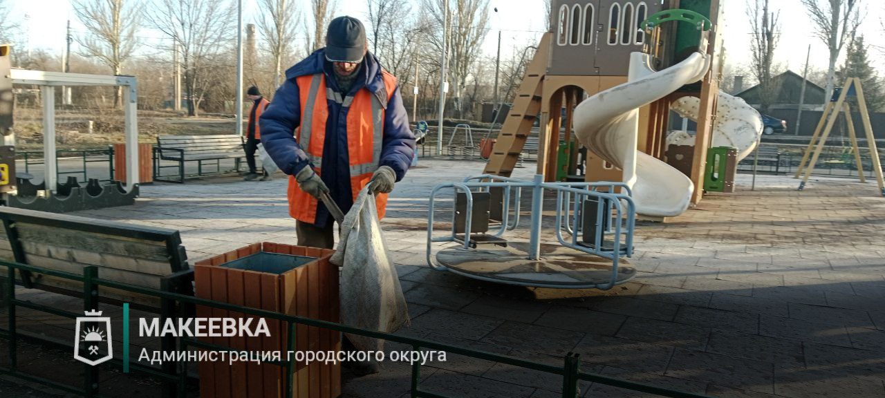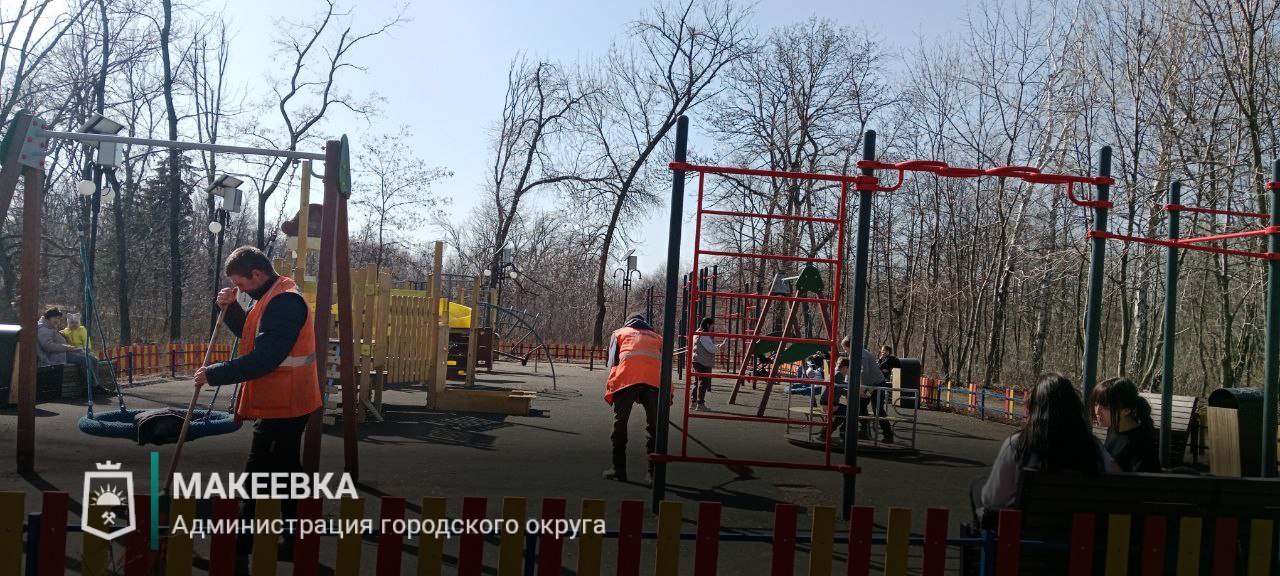 В Макеевке продолжается регулярная уборка детских площадок
