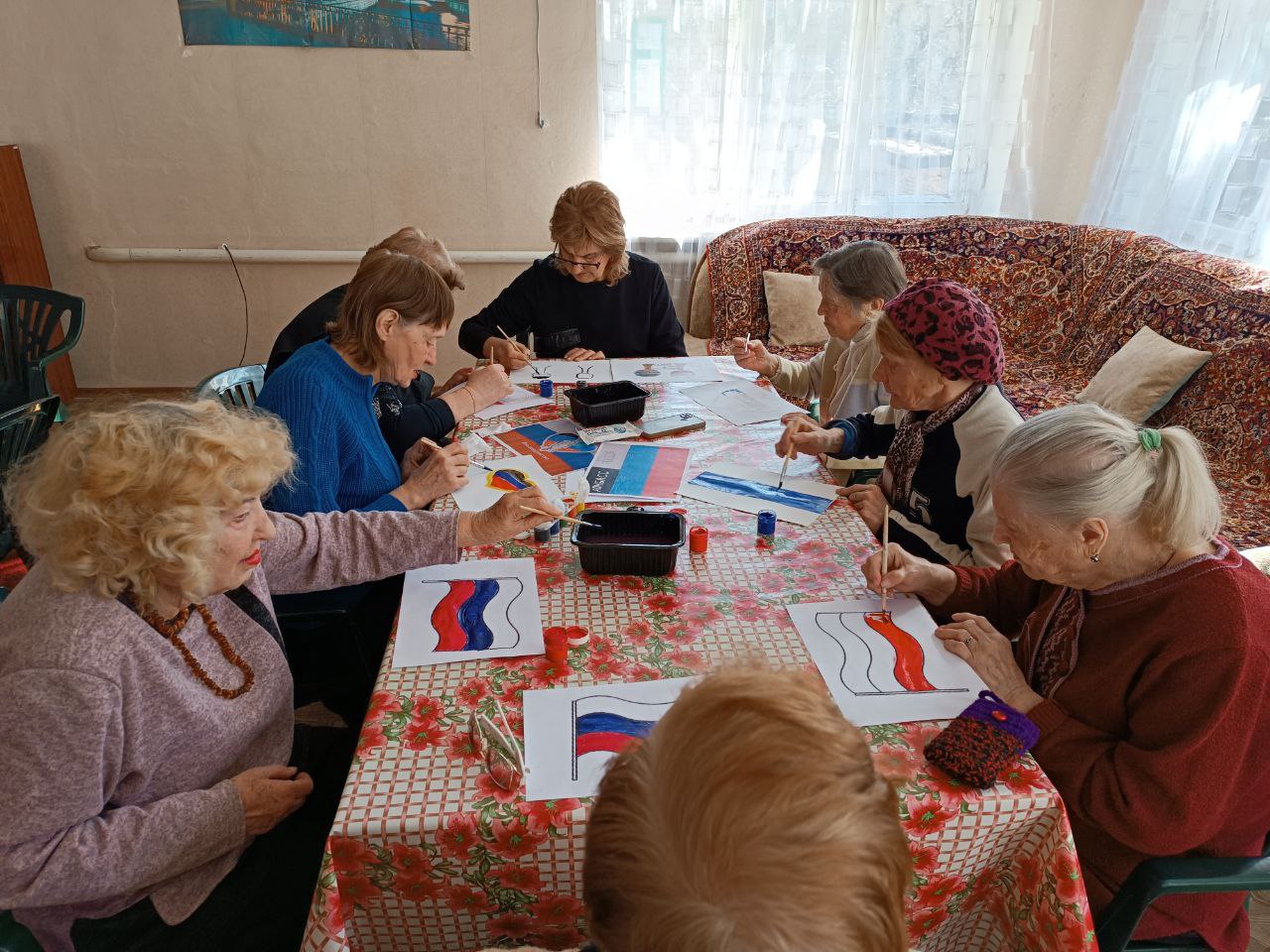 По окончании чаепития присутствующие нарисовали и раскрасили символику Российской Федерации и Донецкой Народной Республики для оформления стенгазеты.
