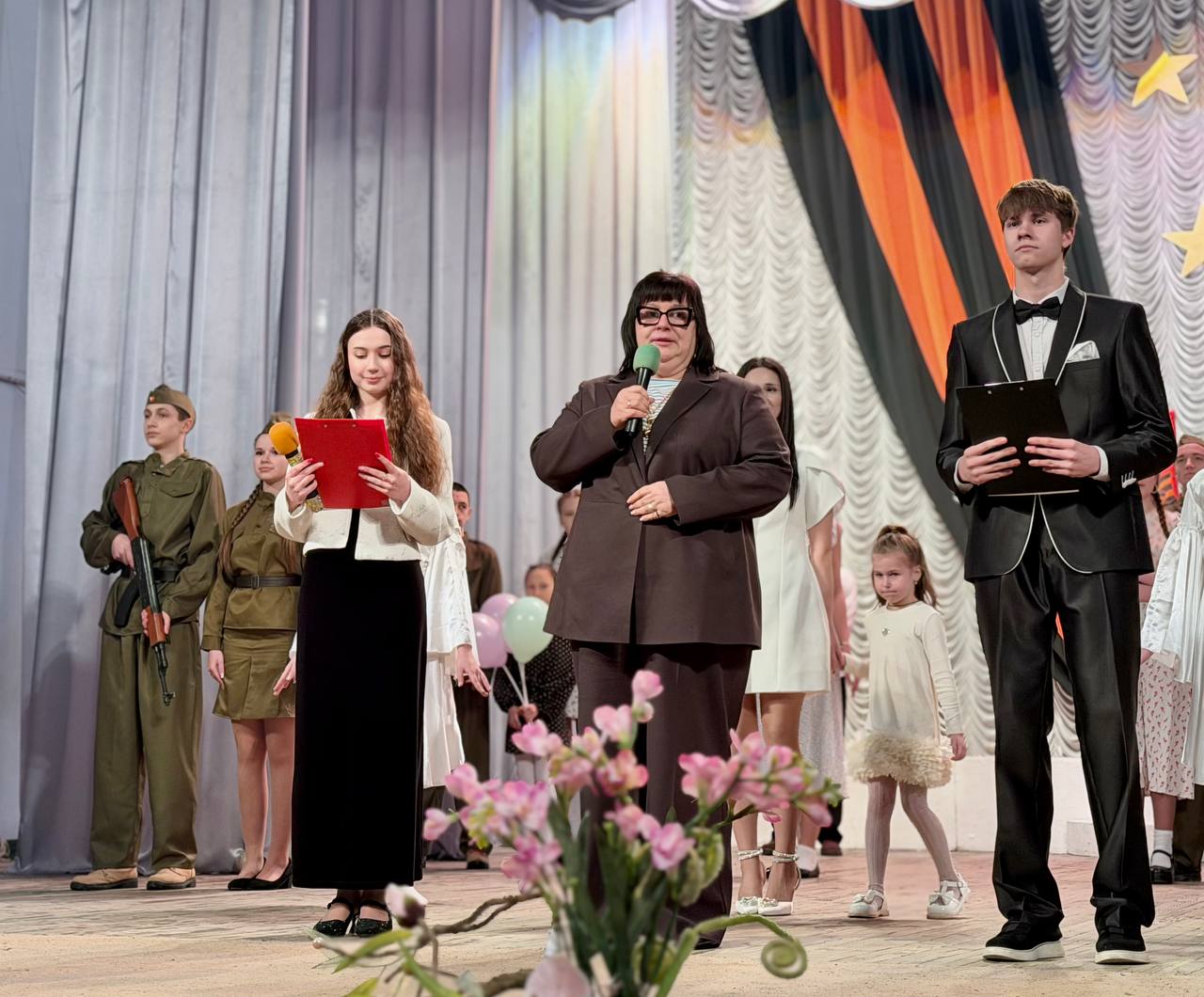 С приветствиями к молодым артистам обратились гости: заместитель главы Администрации городского округа Макеевка И.В. Лях, директор департамента образования Администрации городского округа Макеевка Т.М. Пилюгина и депутат Народного Совета Донецкой Народной Республики Бурцева Н.Н..