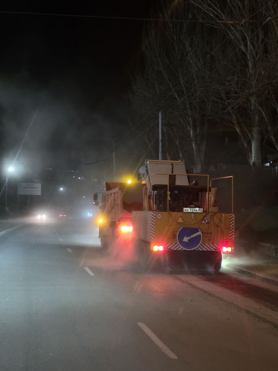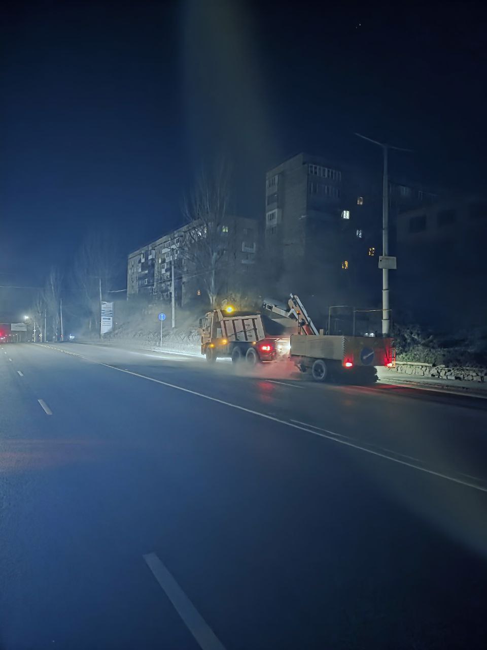 В Макеевке даже в ночное время продолжаются работы по уборке дорог.