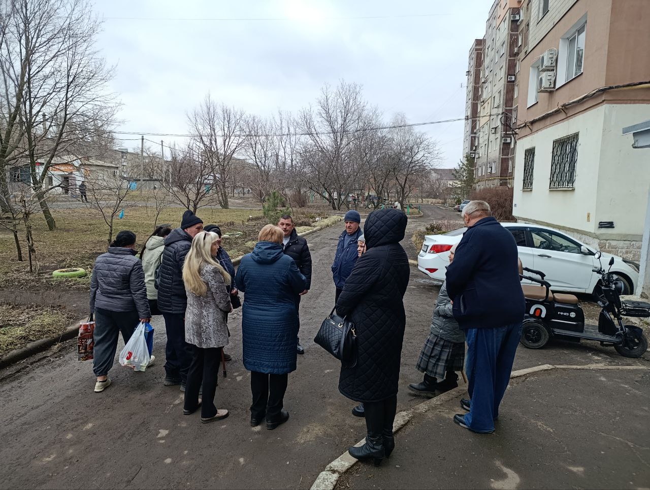 Сегодня, 18 марта в Червоногвардейском районе состоялась встреча руководителя Управы Червоногвардейского внутригородского района Администрации городского округа Макеевка Антона Гринзовского с жителями возле дома № 14 микрорайона Калининский.