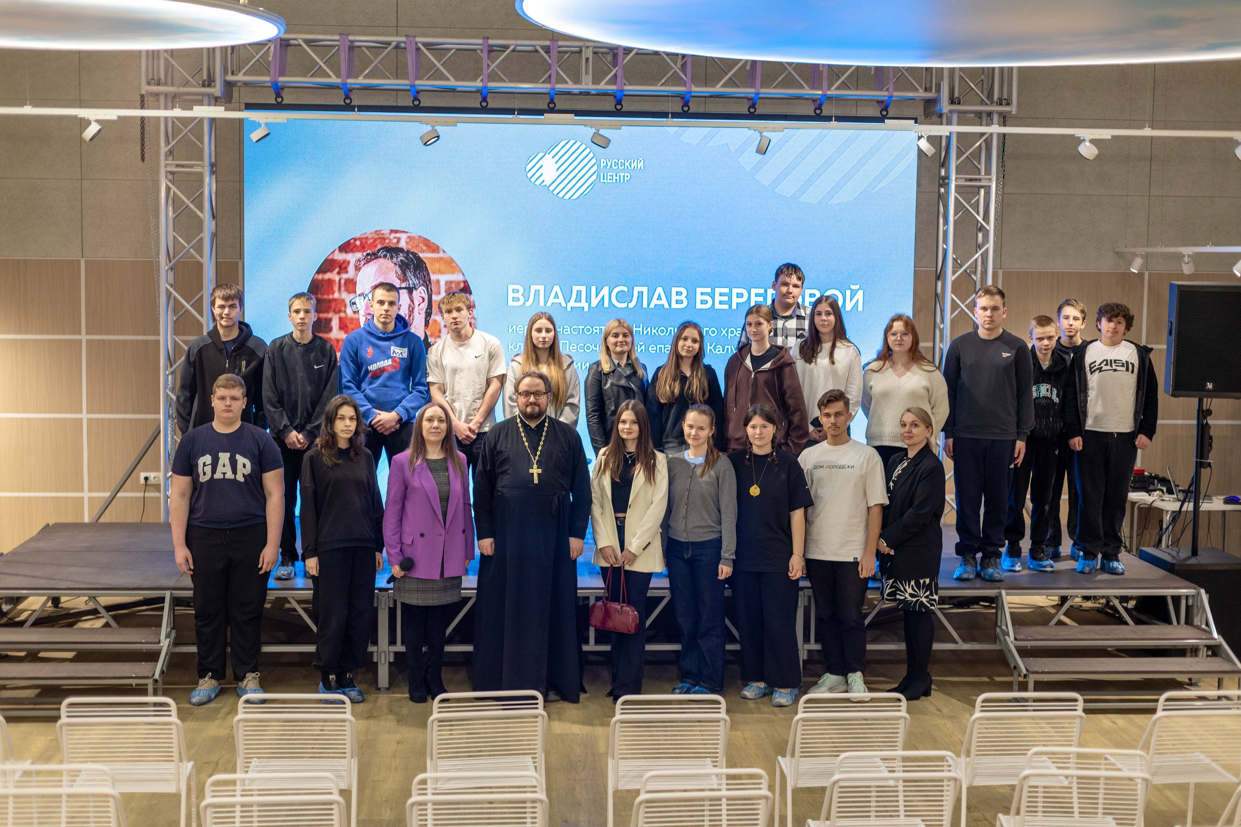 А теперь он среди молодёжи Донбасса: иерей, настоятель Никольского храма г. Мосальска, клирик Песоченской епархии Калужской митрополии Владислав Береговой в Донецкой Народной Республике!